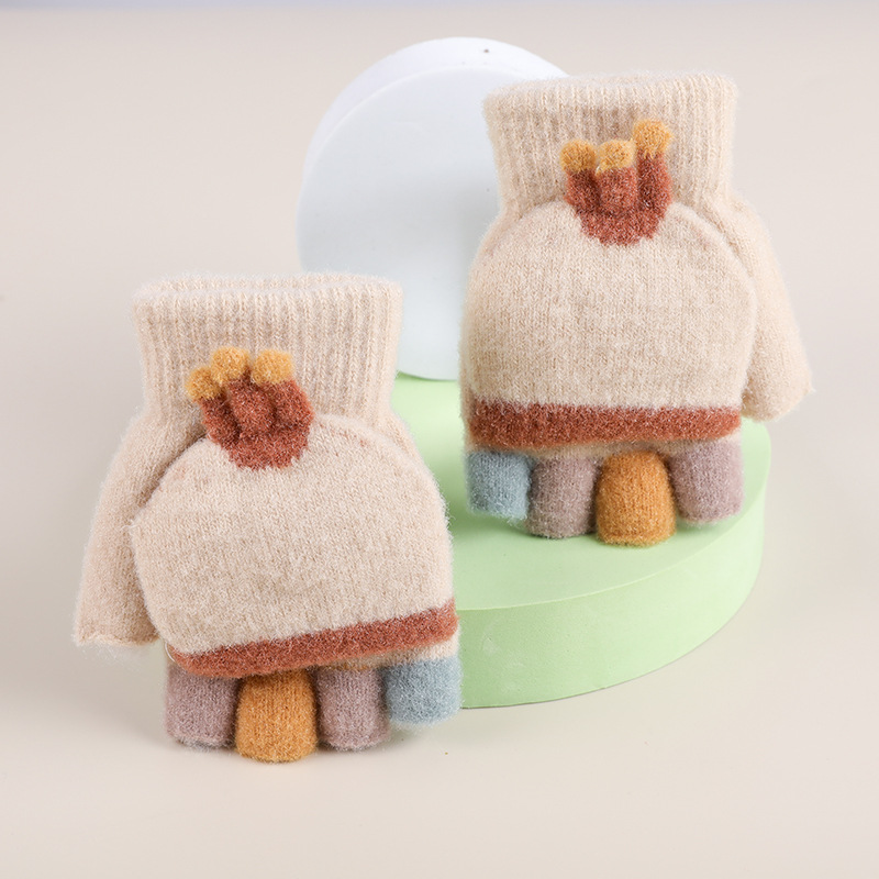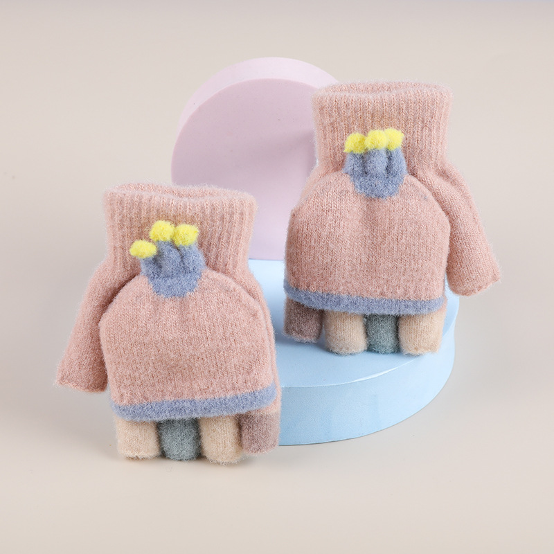 어린이 장갑 반 손가락 귀여운 따뜻한 기모 두꺼운 초등학교 어린이 다섯 손가락 아기 만화 장갑 겨울스토어 가기