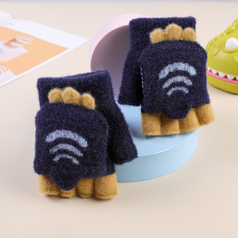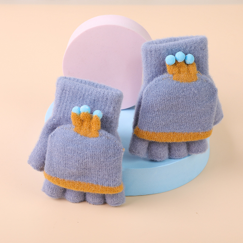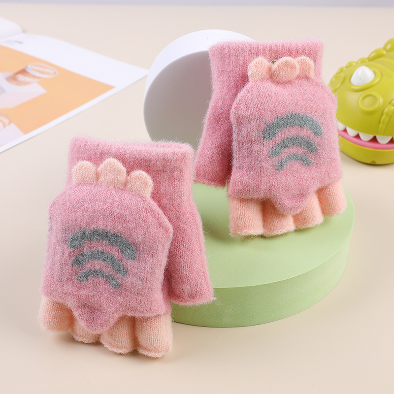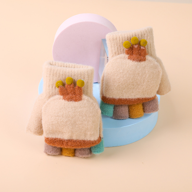 소년 소녀 용 어린이 겨울 장갑 아기 따뜻한 어린이 기모 두꺼운 어린이 귀여운 이중 사용을위한 반 손가락 플립 커버