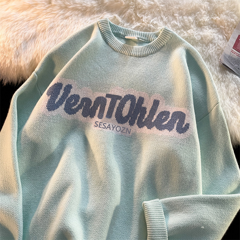 M103Pexrozna 트렌디 브랜드 소프트 왁스 그린 스웨터 남성 연인 가을과 겨울 복고풍 일본 게으른 스타일 스웨터스토어 가기
