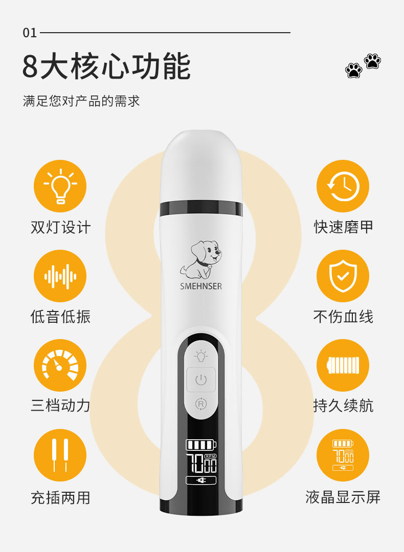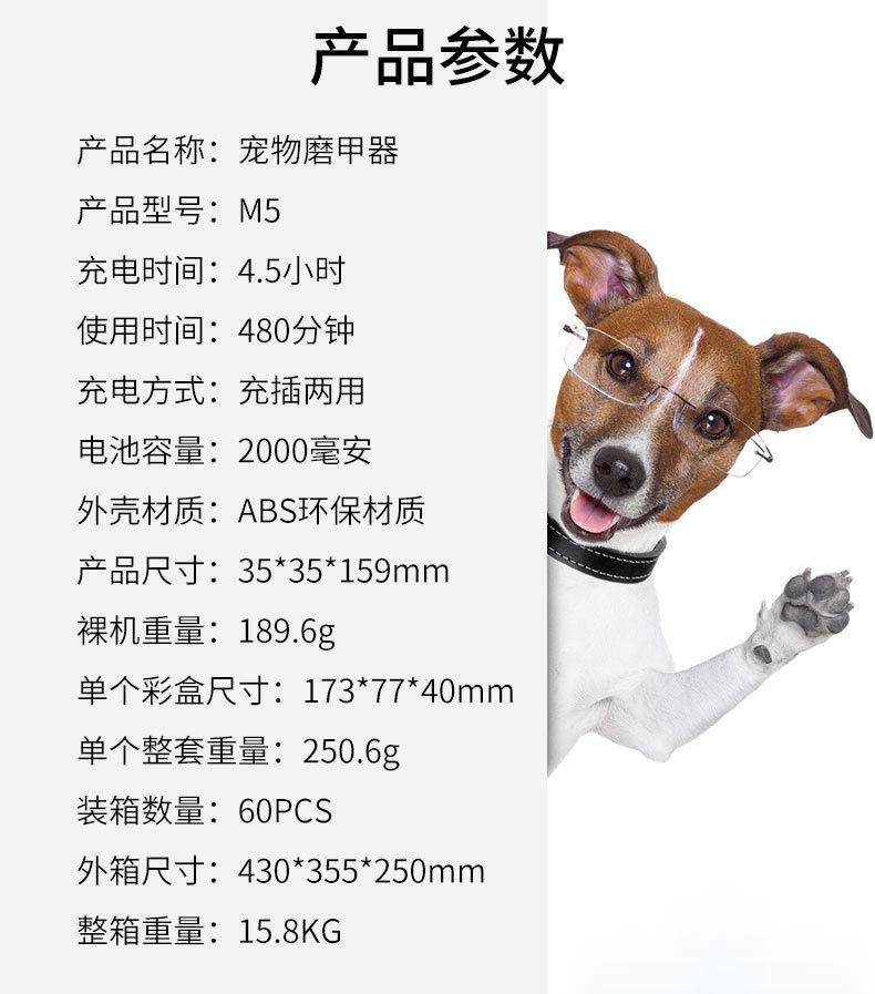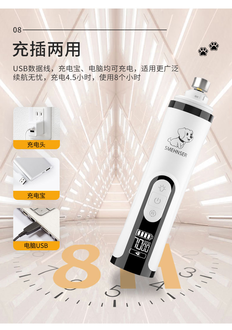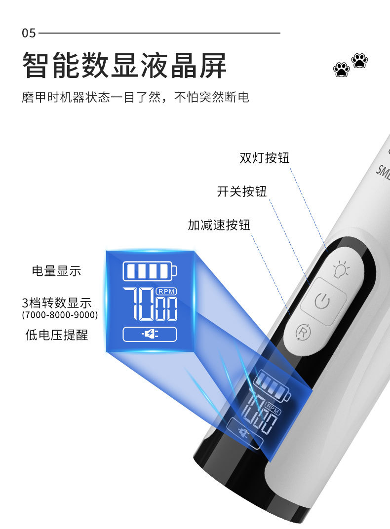 M5 애완 동물 네일 그라인더 고출력 LED 이중 조명 혈액 라인 전기 충전 네일 나이프 고양이와 개 매니큐어 크로스 보더 용품스토어 가기