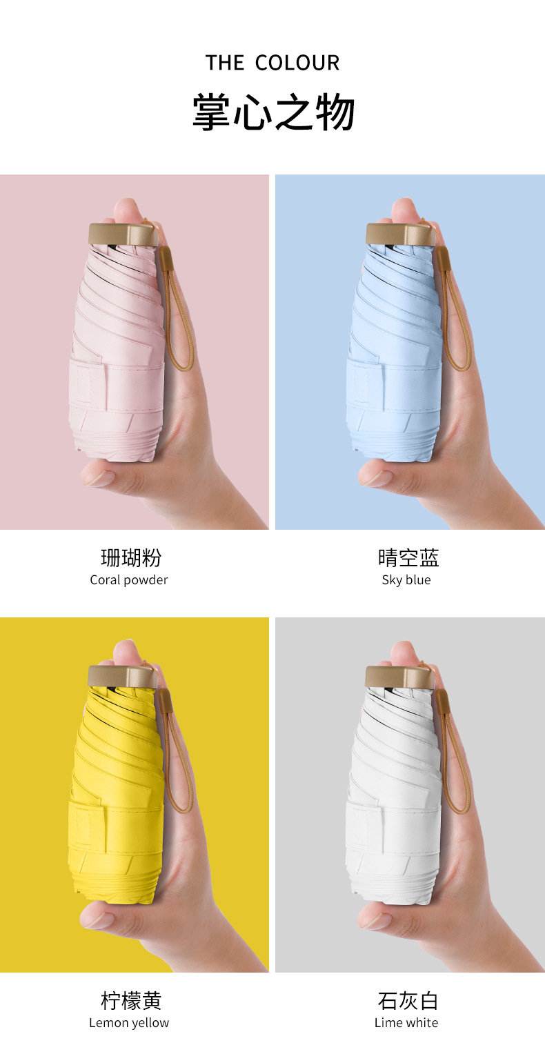 써니 우산 접는 울트라 라이트 소형 평면 6 배 우산 태양 보호 차양 태양 우산 UV 보호 미니 포켓 우산