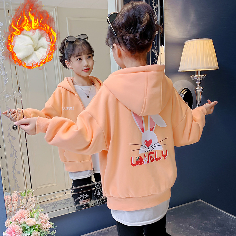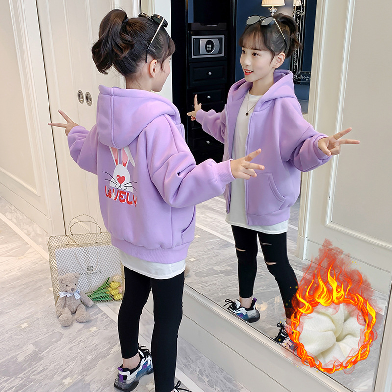여자 2024 겨울 새 벨벳 재킷 어린이 한국 스타일 서양식 두꺼운 카디건 탑 만화 후드 스웨터스토어 가기