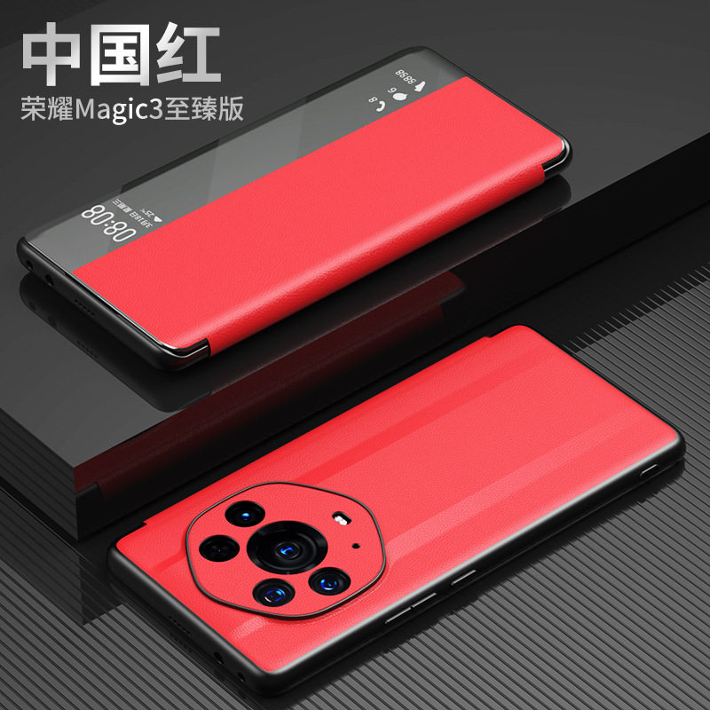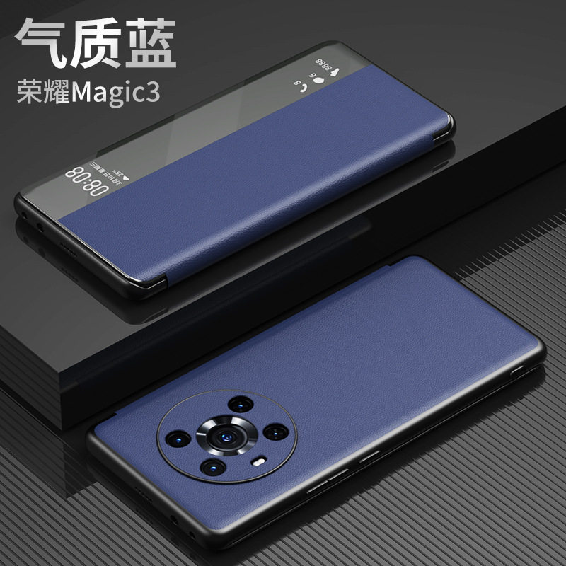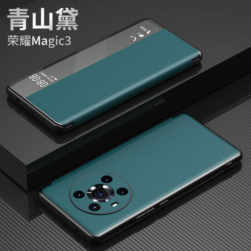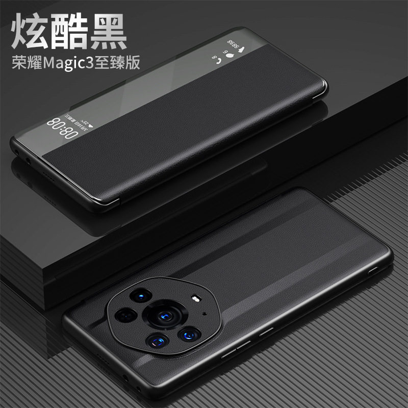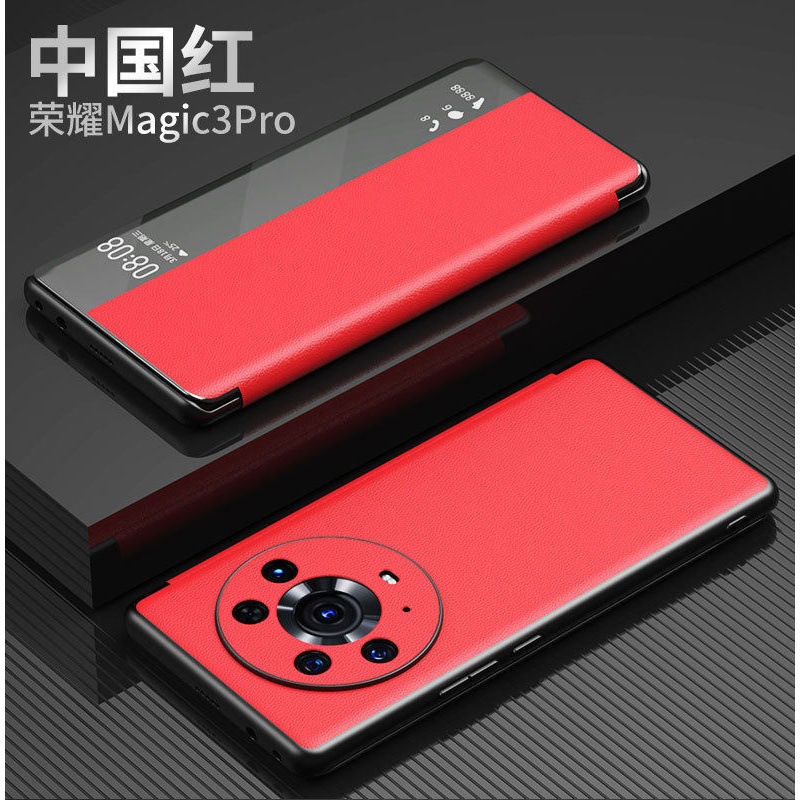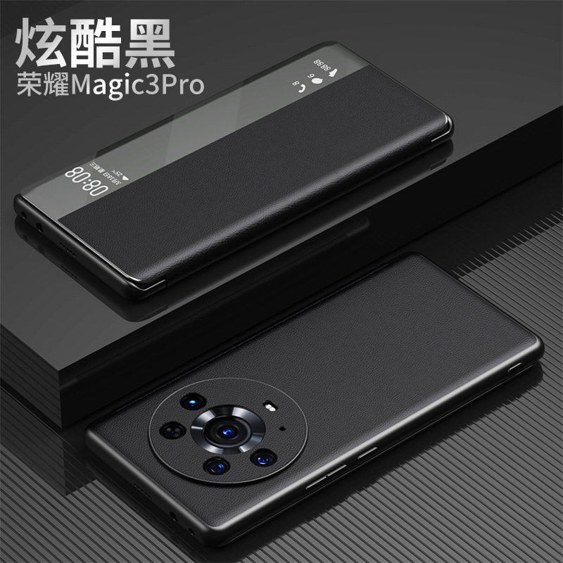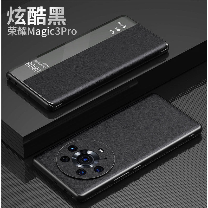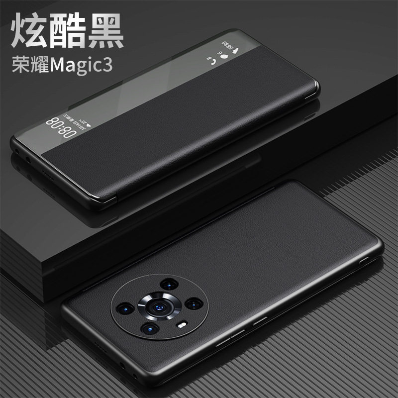 영광 Magic3 탑 에디션 전화 케이스 영광 Magic3 플립 스마트 창 최대 절전 모드 남성과 여성을위한 정품 가죽스토어 가기