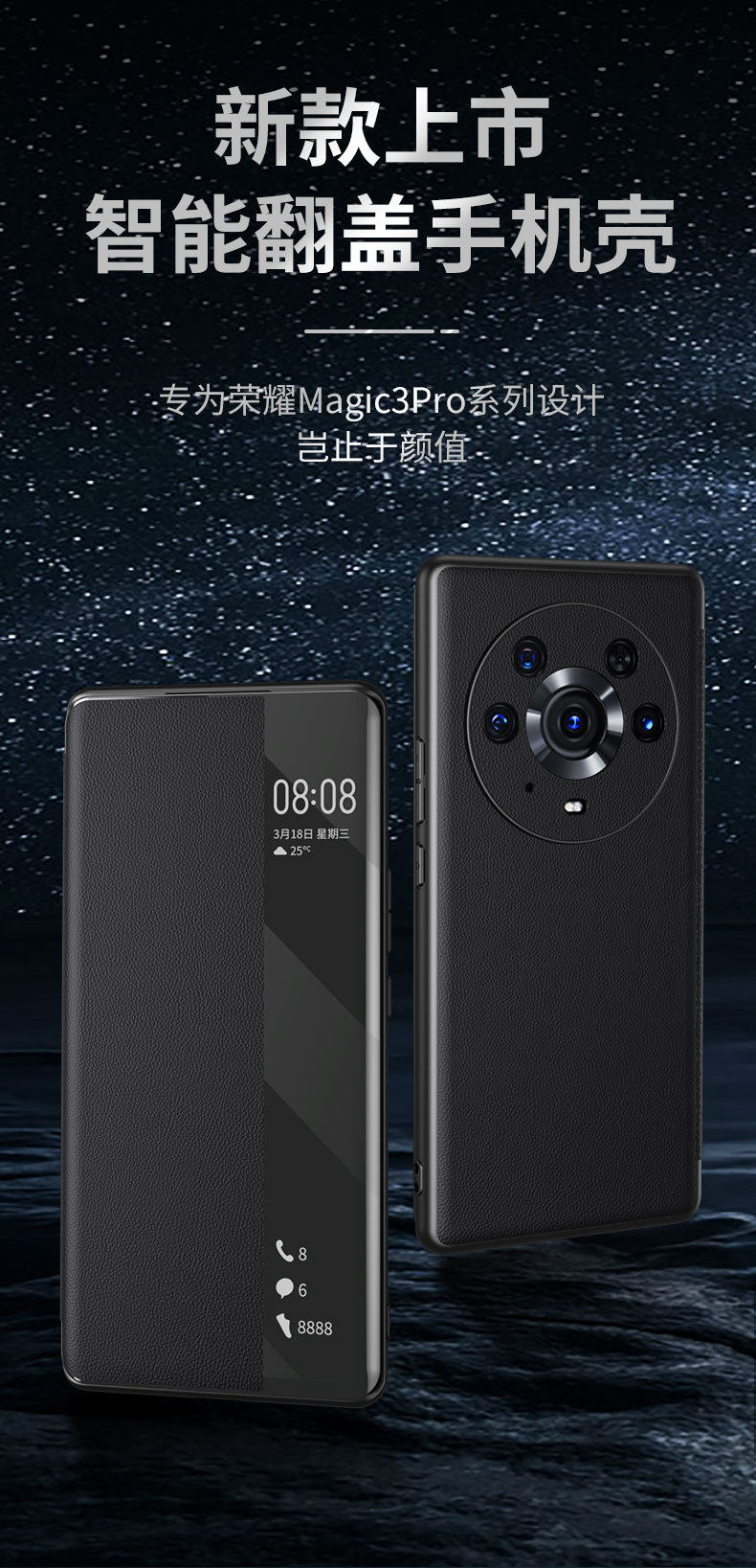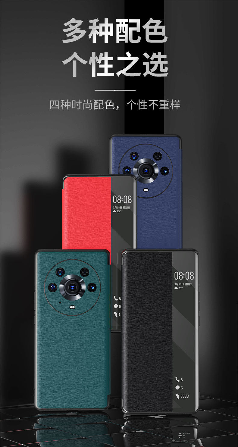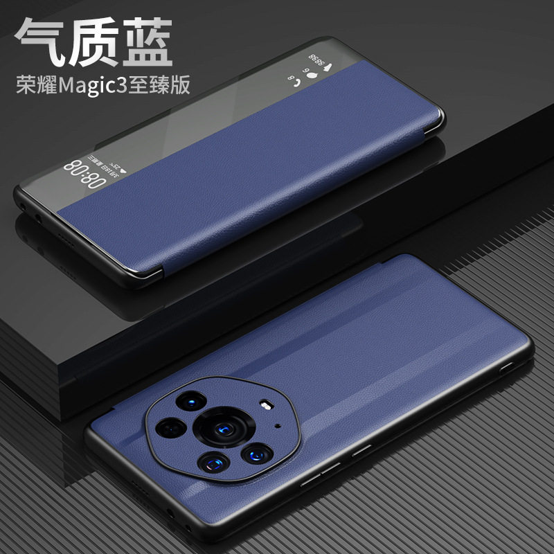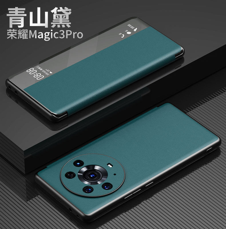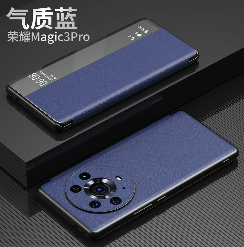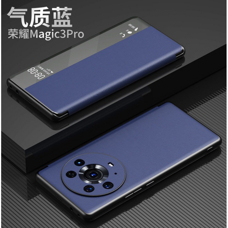 영광 Magic3 탑 에디션 전화 케이스 영광 Magic3 플립 스마트 창 최대 절전 모드 남성과 여성을위한 정품 가죽스토어 가기