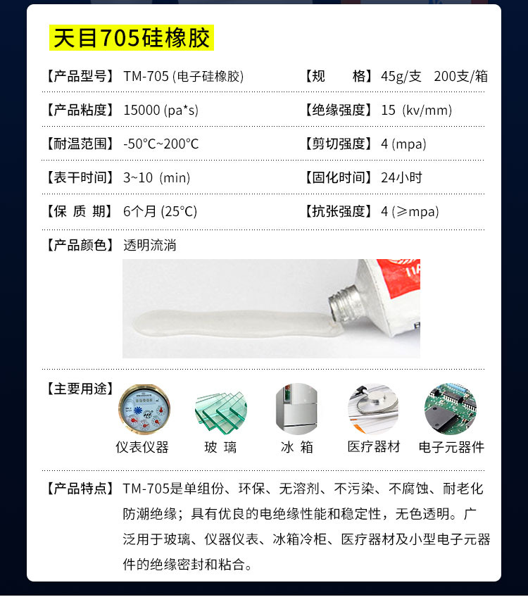 판촉 Tianmu 브랜드 705 투명 실리콘 고무 전자 고정/절연/밀봉/방수 실리콘 물