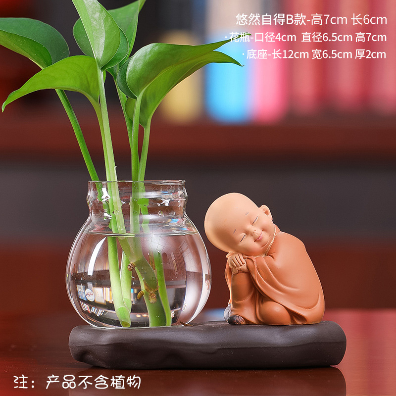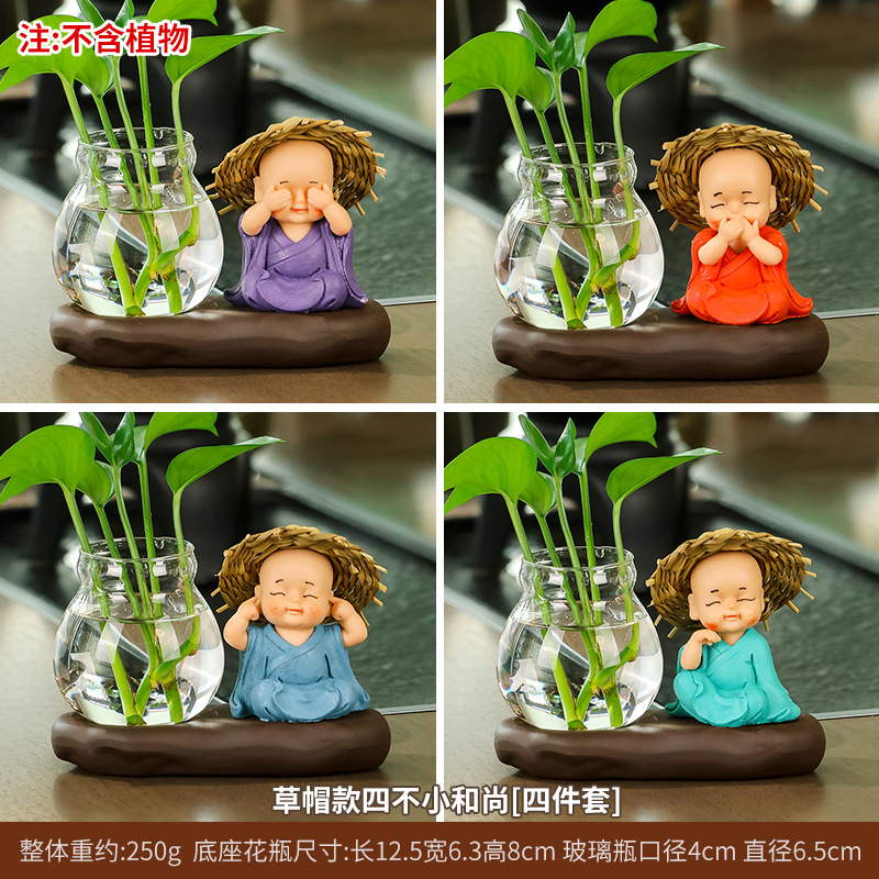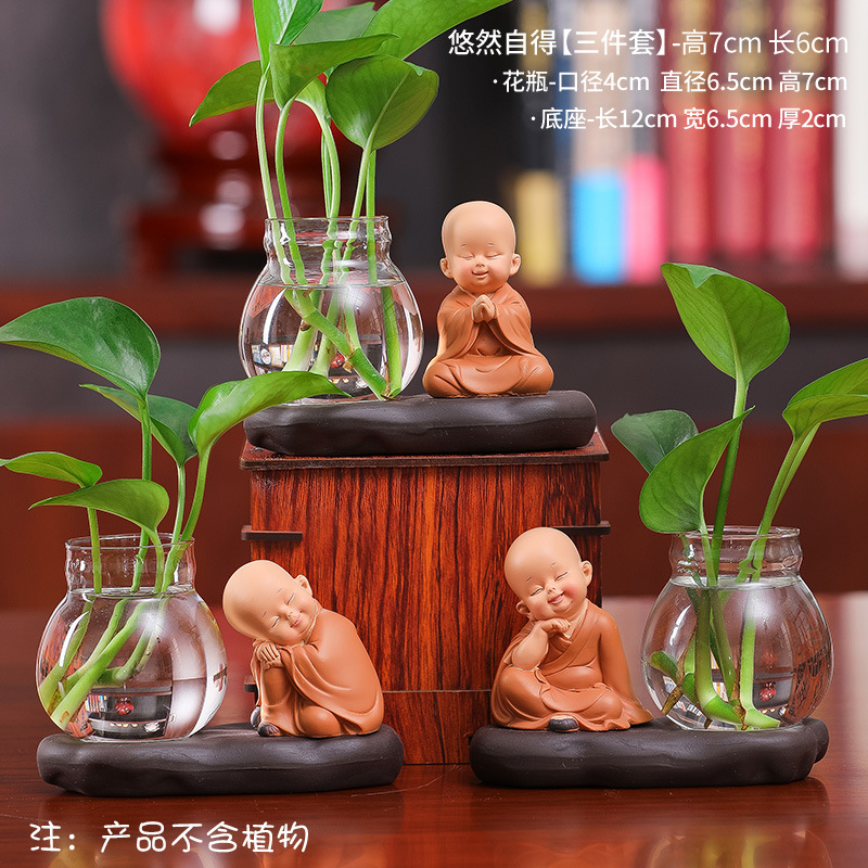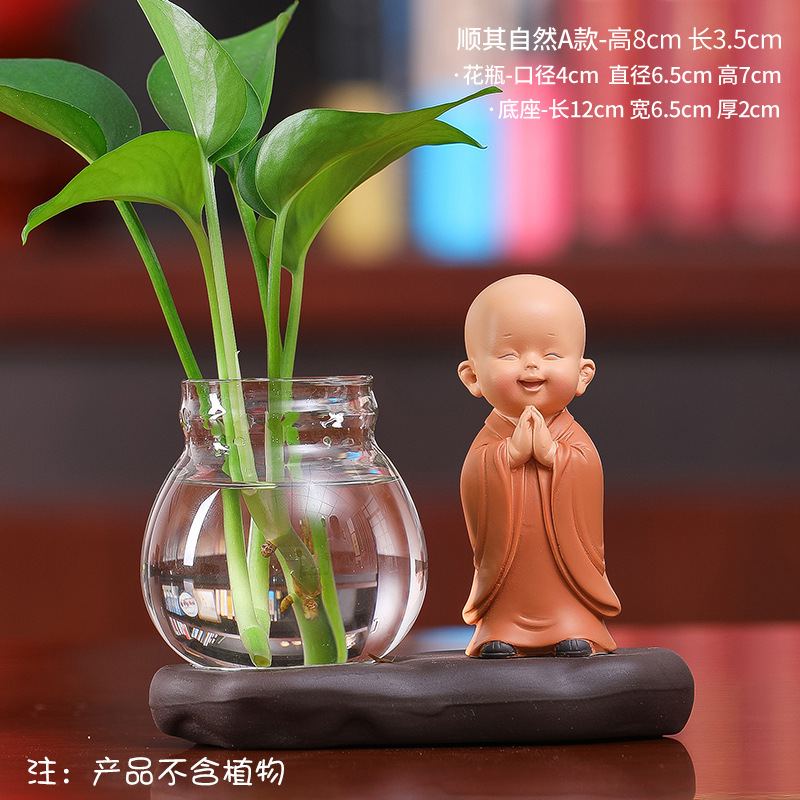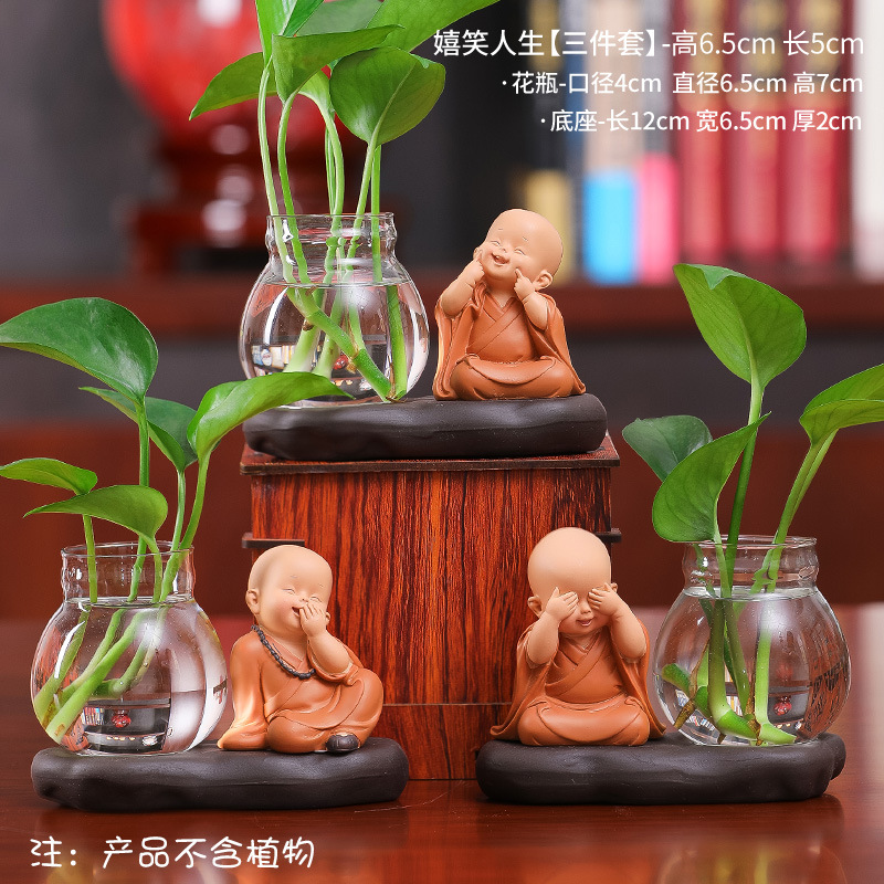 창조적 인 중국식 꽃병 거실 귀여운 Hui Wu 작은 스님 투명 유리 제품 녹색 딜 수경 초보자 장식품스토어 가기