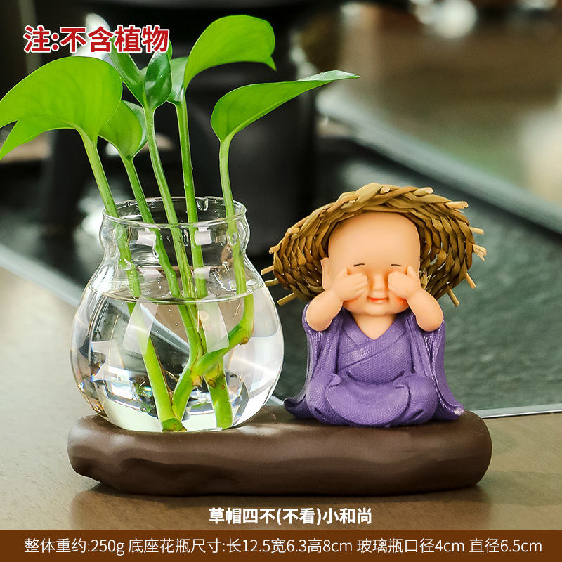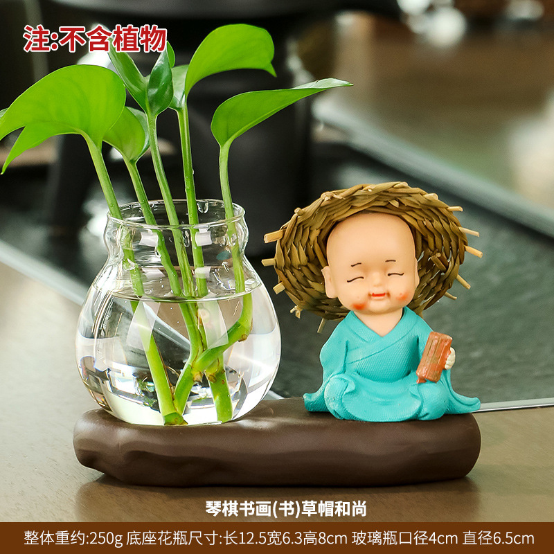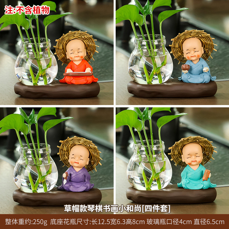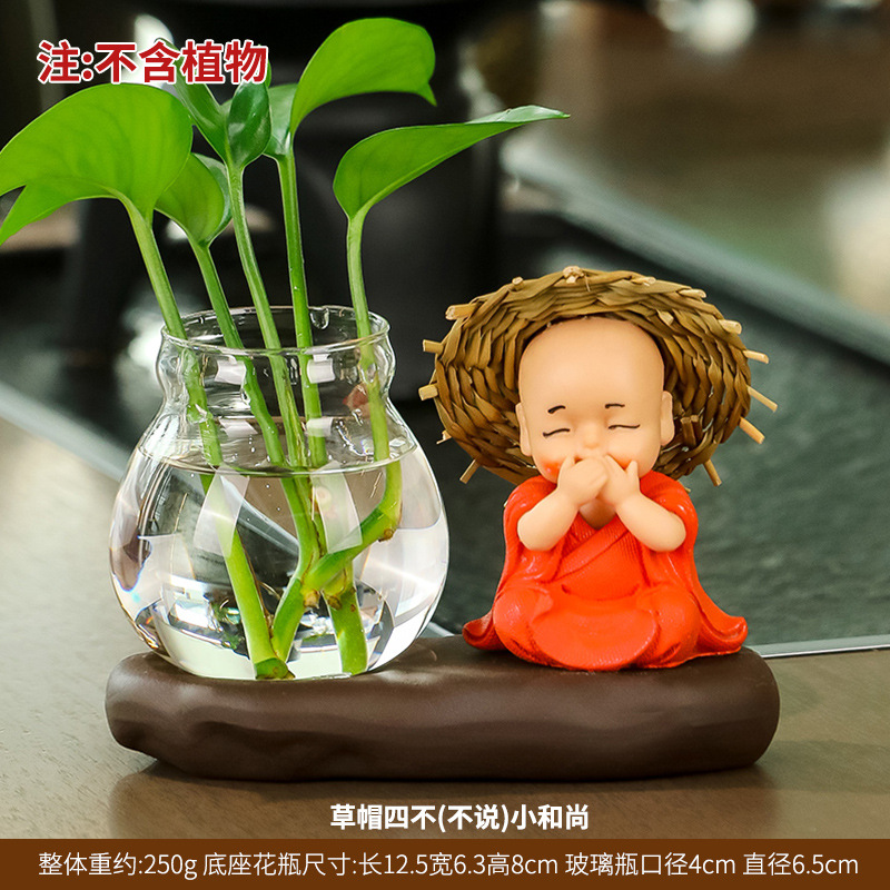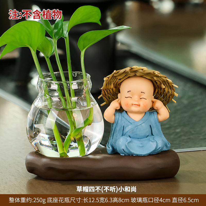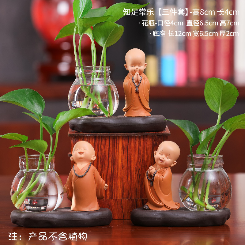 창조적 인 중국식 꽃병 거실 귀여운 Hui Wu 작은 스님 투명 유리 제품 녹색 딜 수경 초보자 장식품스토어 가기