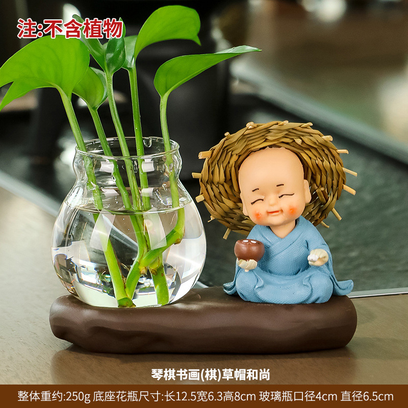 창조적 인 중국식 꽃병 거실 귀여운 Hui Wu 작은 스님 투명 유리 제품 녹색 딜 수경 초보자 장식품