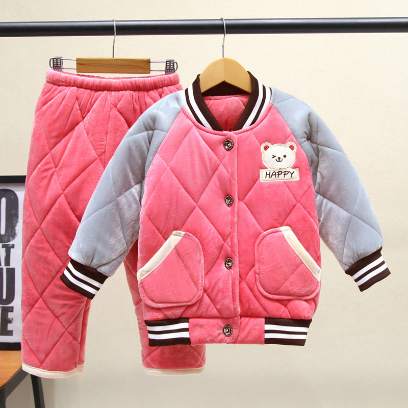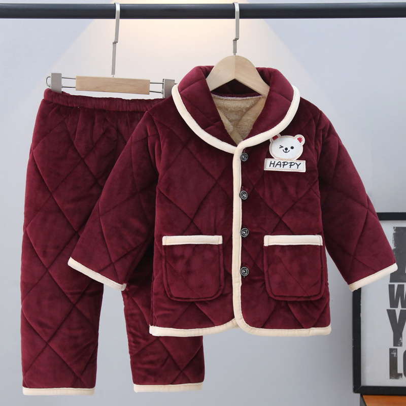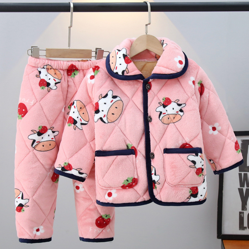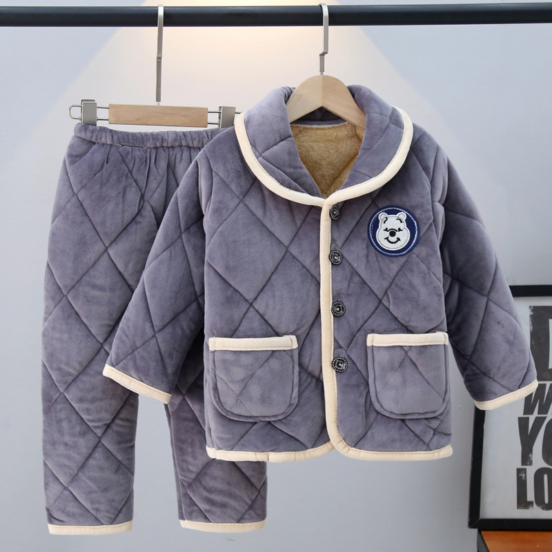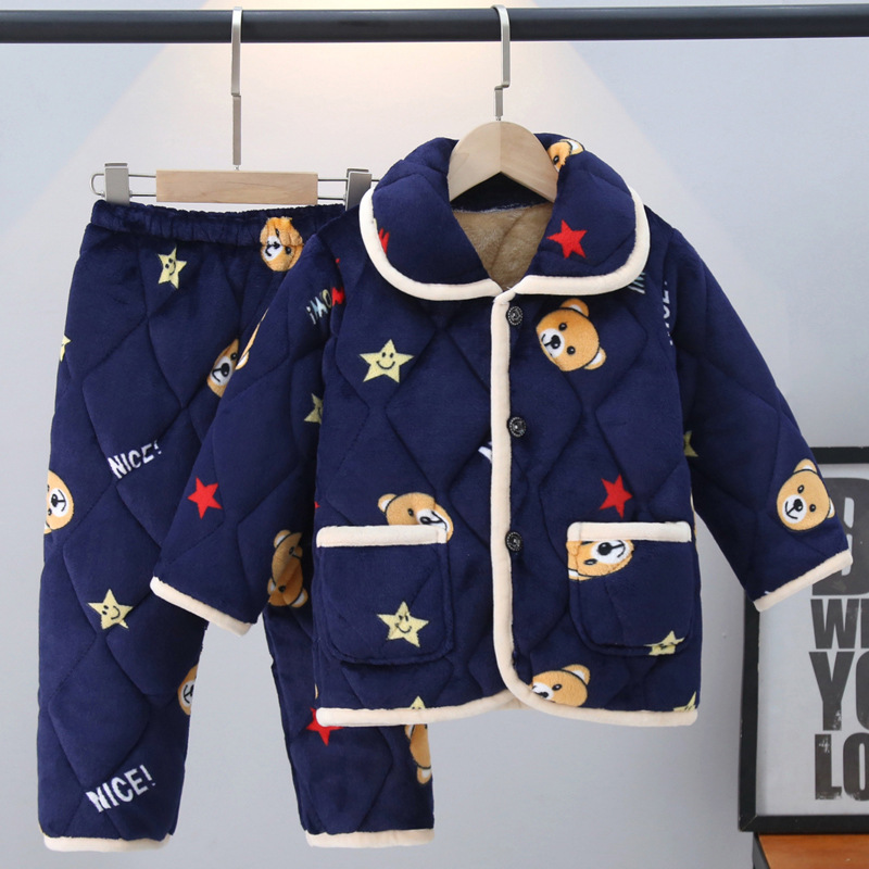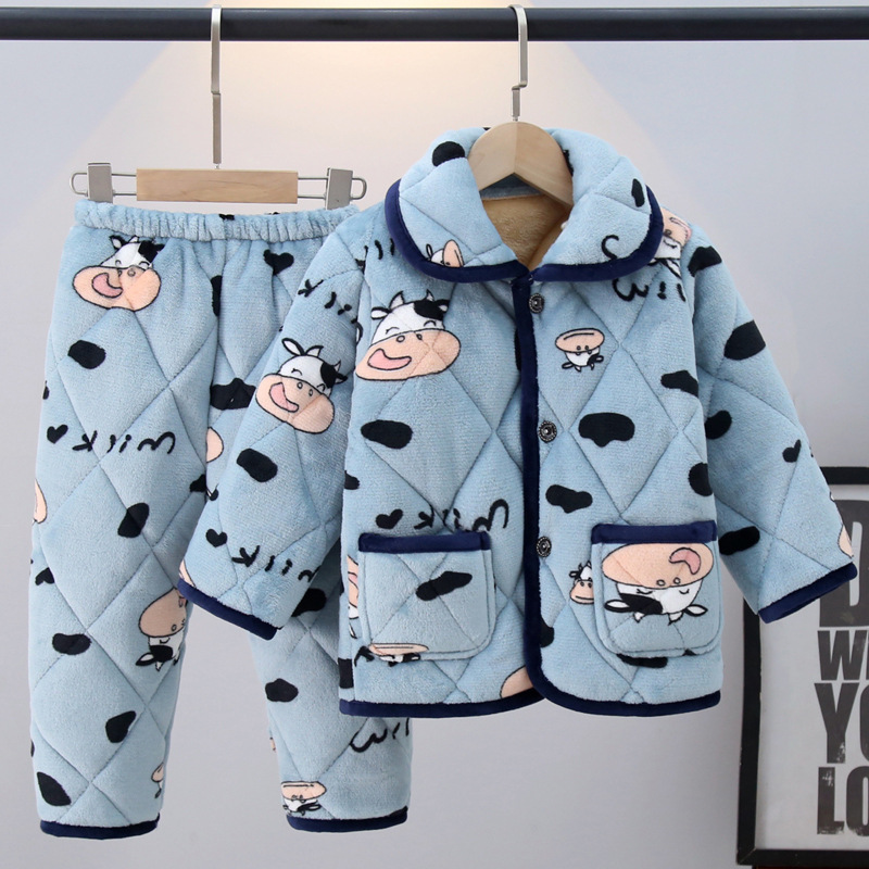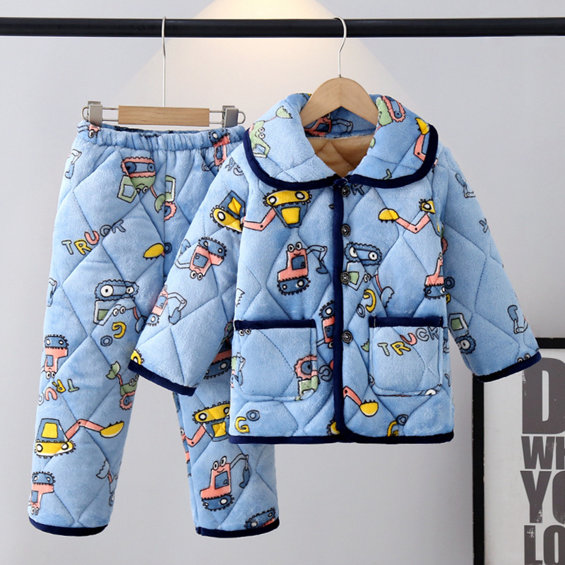 어린이 잠옷 겨울 두꺼운 면 플란넬 소년과 소녀 가을과 겨울 산호 양털 아기 가정 옷 세트