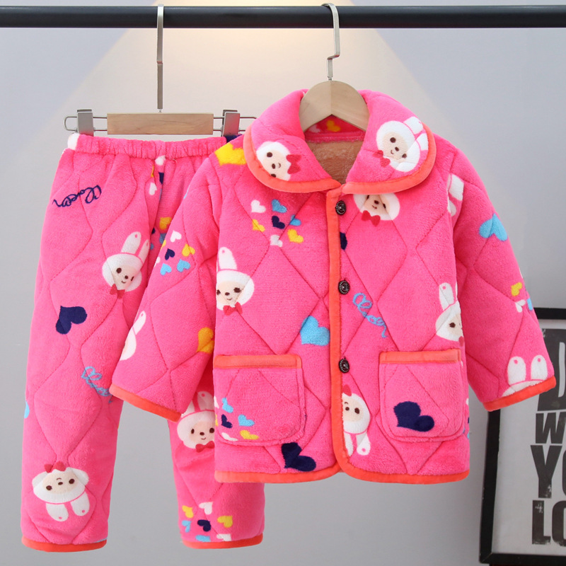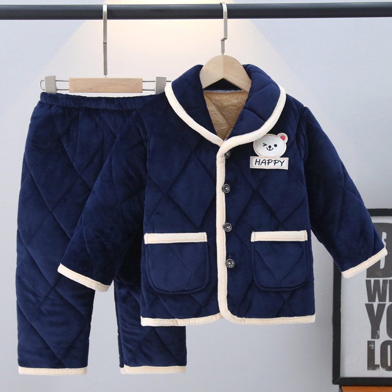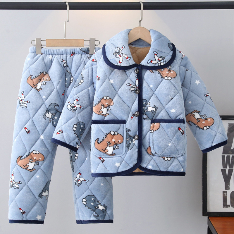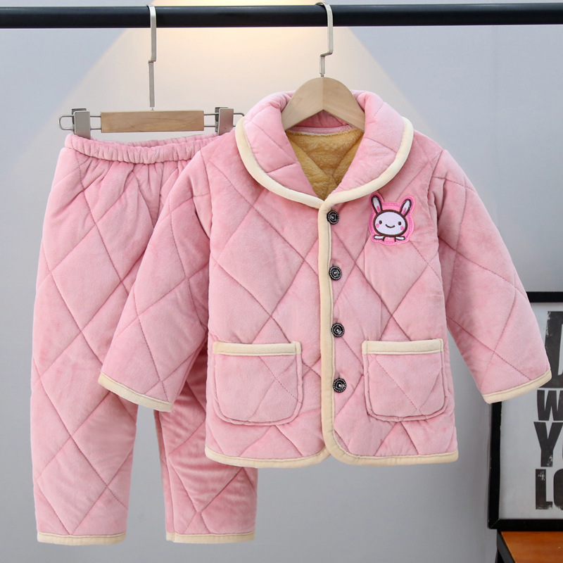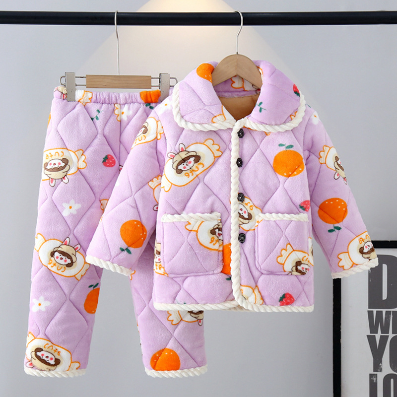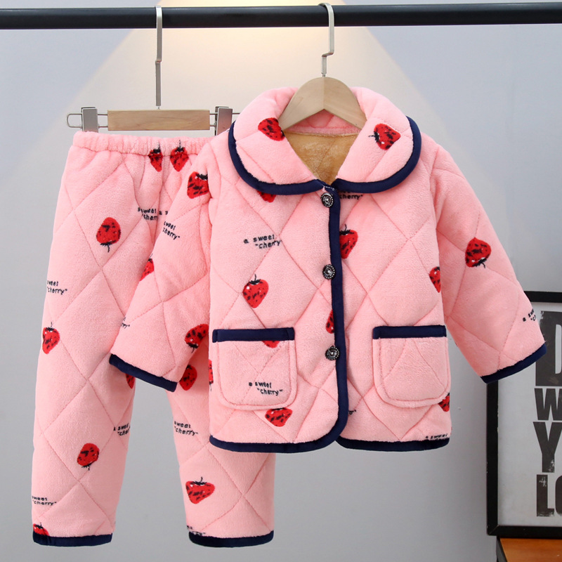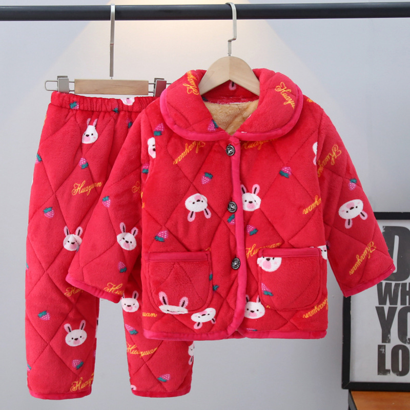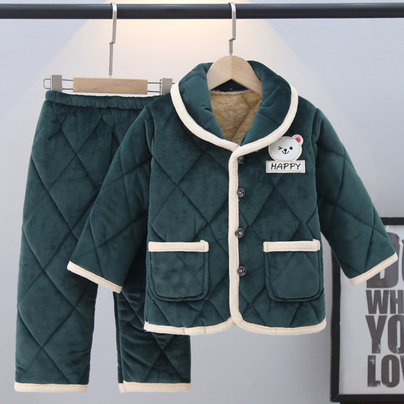 어린이 잠옷 겨울 두꺼운 면 플란넬 소년과 소녀 가을과 겨울 산호 양털 아기 가정 옷 세트
