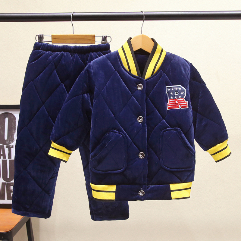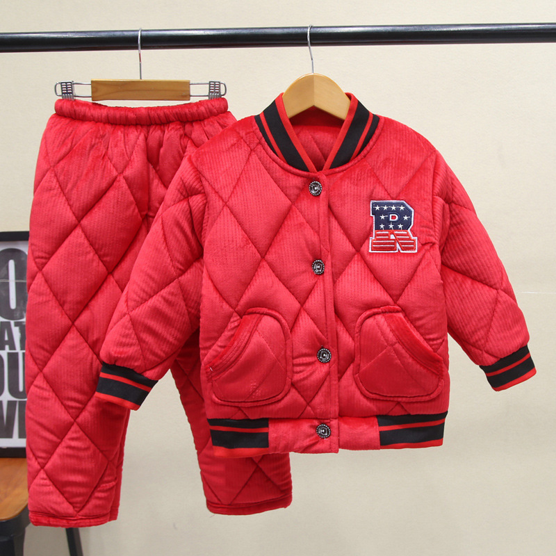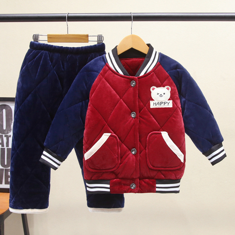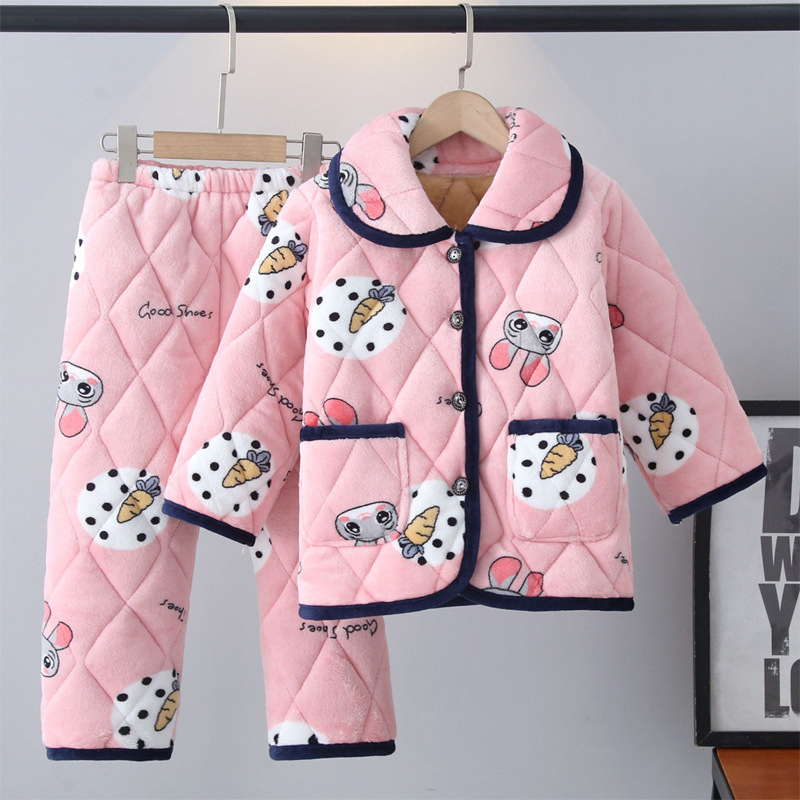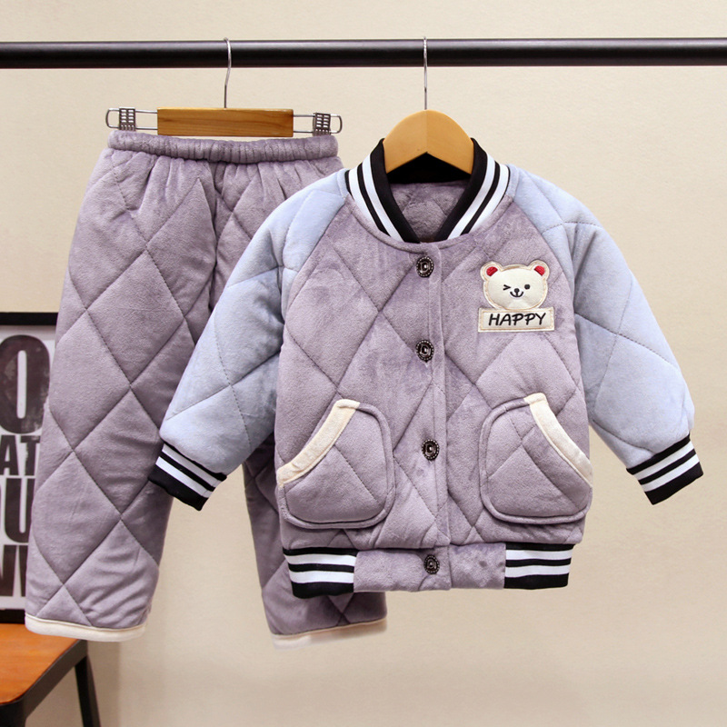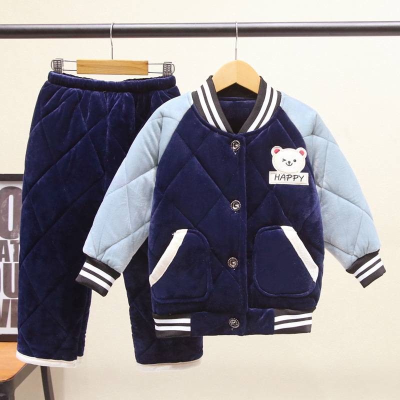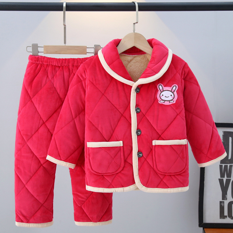 어린이 잠옷 겨울 두꺼운 면 플란넬 소년과 소녀 가을과 겨울 산호 양털 아기 가정 옷 세트