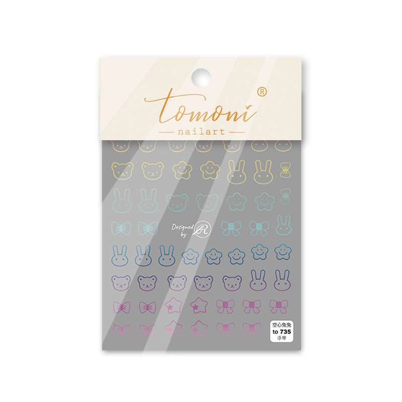Tomoni 사이버 연예인 네일 아트 스티커 전체 스티커 방수 만화 귀여운 곰 토끼 릴리프 중공 스테레오 네일 스티커스토어 가기
