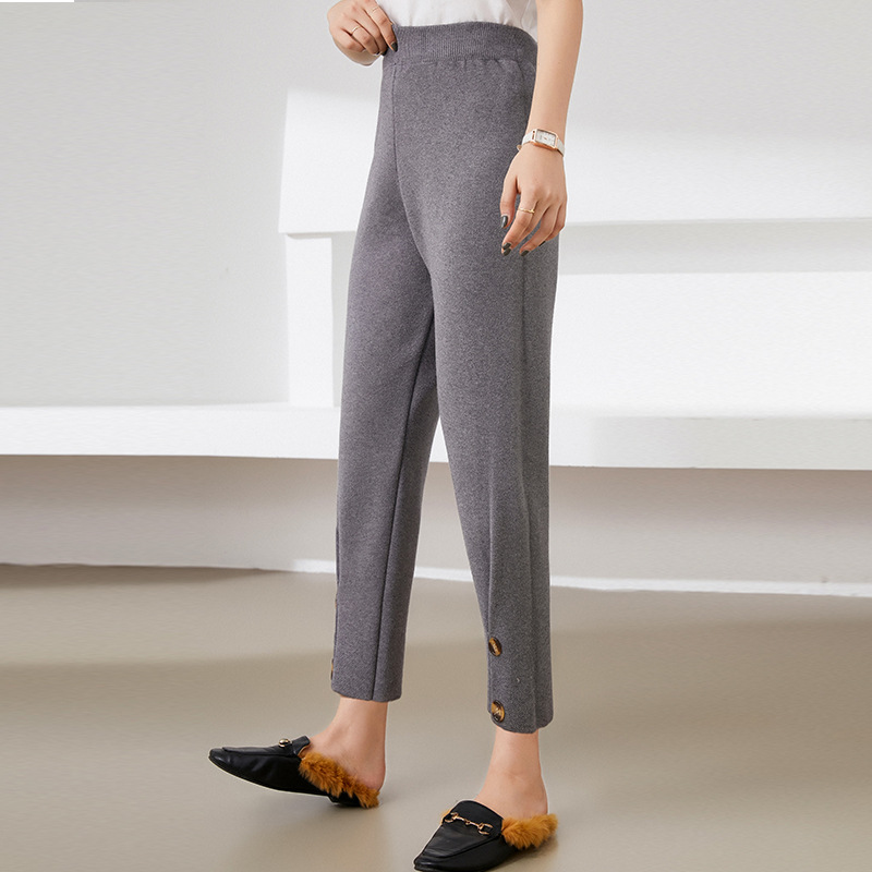 두꺼운 니트 바지 여성의 봄과 가을 느슨한 슬리밍 여아 바지 작은 다리 Harlan 바지 여성의 2021 새로운 유행 바지스토어 가기
