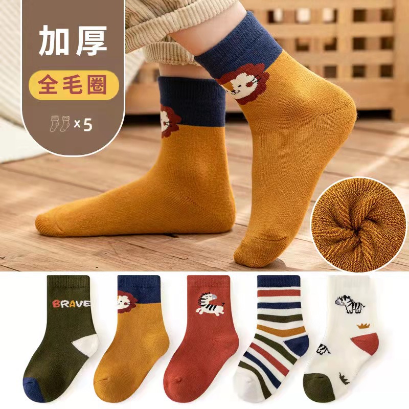 소년 양말 테리 양말 기모 두꺼운 어린이 양말 컬러 만화 소년과 소녀 양말 도매스토어 가기