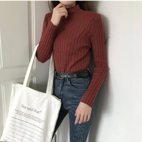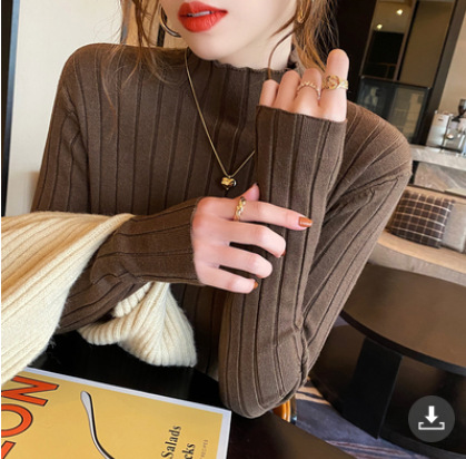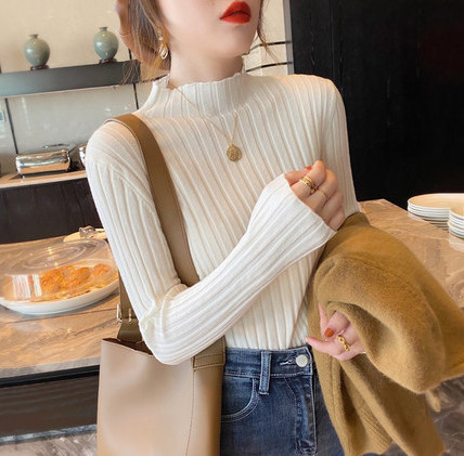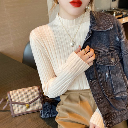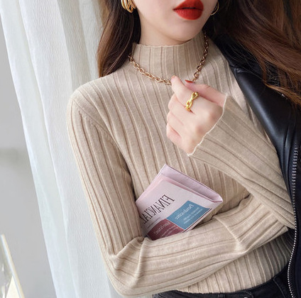 새로운 반소매 가을과 겨울 스웨터 하프 터틀넥 니트 슬림 핏 핏 스트립베이스 탑 패션 여성 의류스토어 가기