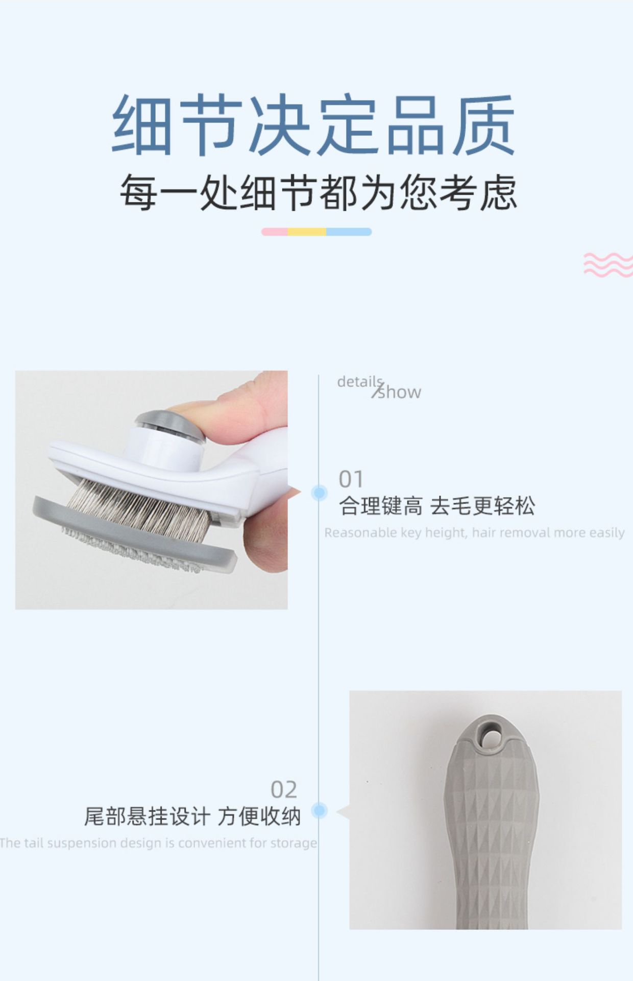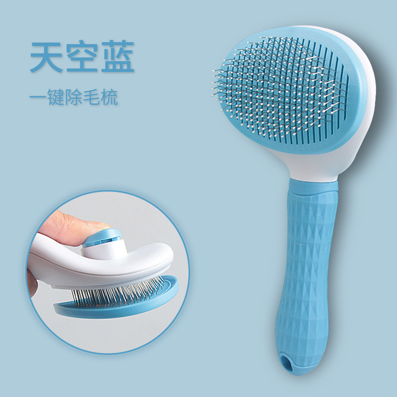 국경 간 애완 동물 마사지 빗 오픈 매듭 빗 자기 청소 빗 고양이 개 모든 개 유니버설 스틸 바늘 빗 원 버튼 떠 다니는 머리스토어 가기