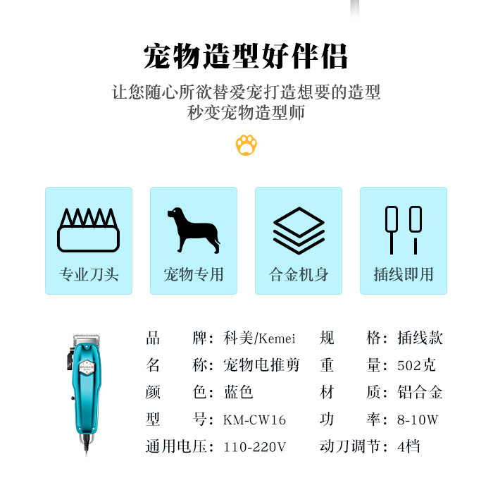 크로스보더 코메이 애완동물 이발기 KM-CW16 강아지와 고양이 전용 전기 이발기