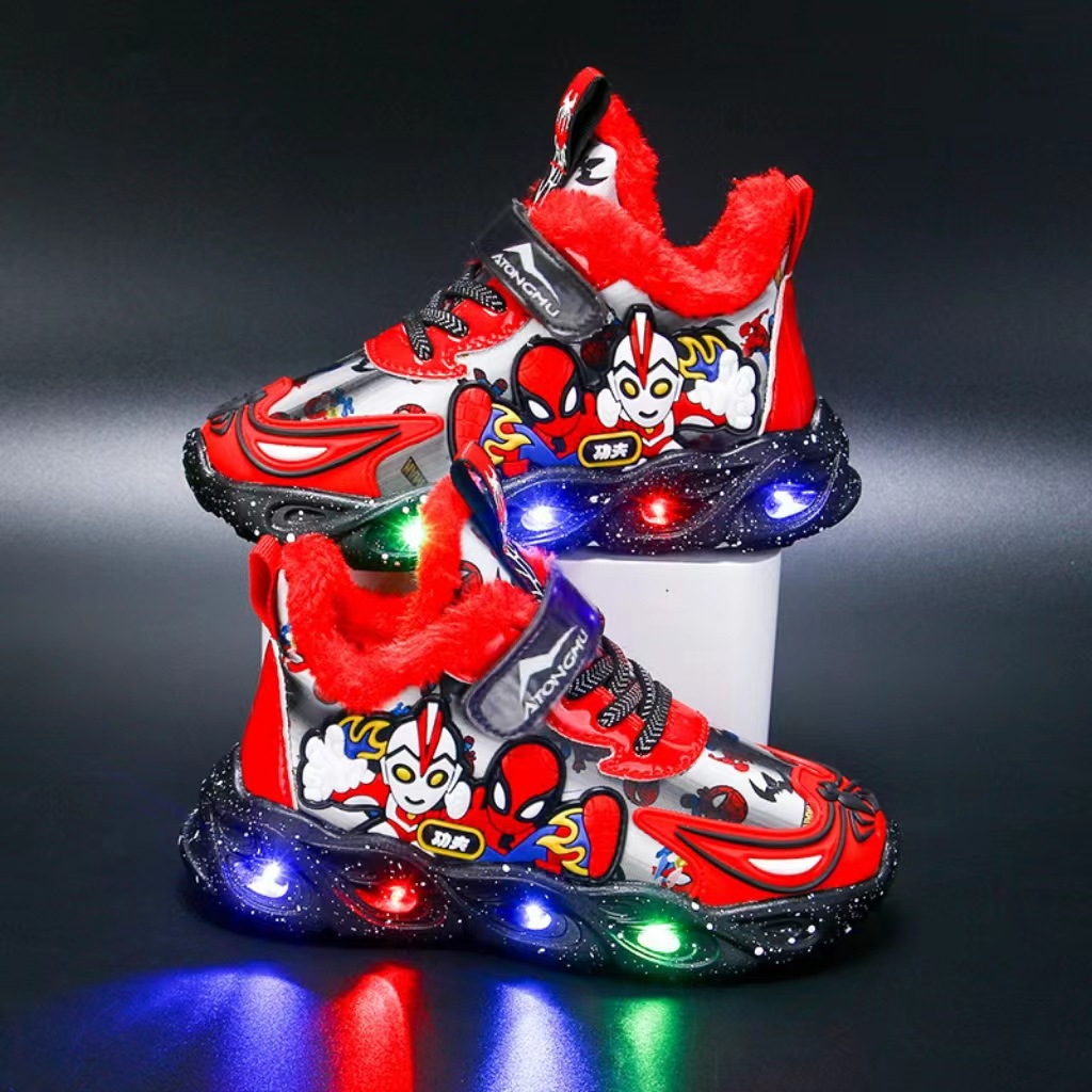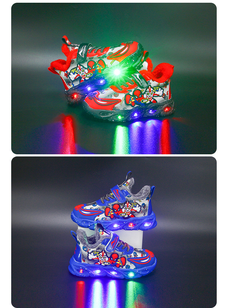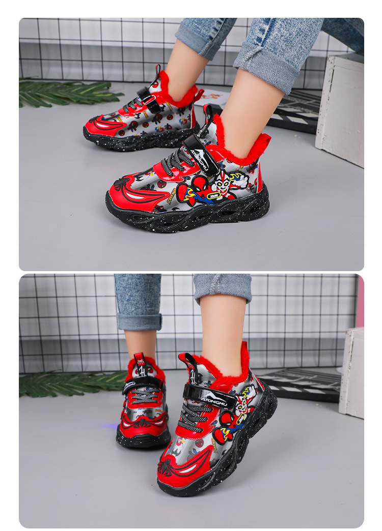 조명이 달린 도매 아동 운동화 2025 가을 겨울 신상 남아용 신발, 벨벳으로 보온, 미끄럼 방지, 부드러운 밑창 아동용 신발스토어 가기