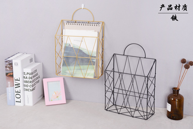크리에이 티브 북유럽 심플 아이언 북, 신문, 잡화 장식 보관 바구니 걸이 가능한 휴대용 스토리지 랙 벽걸이 랙