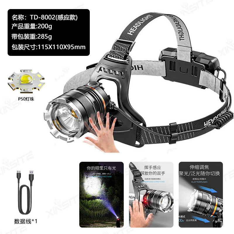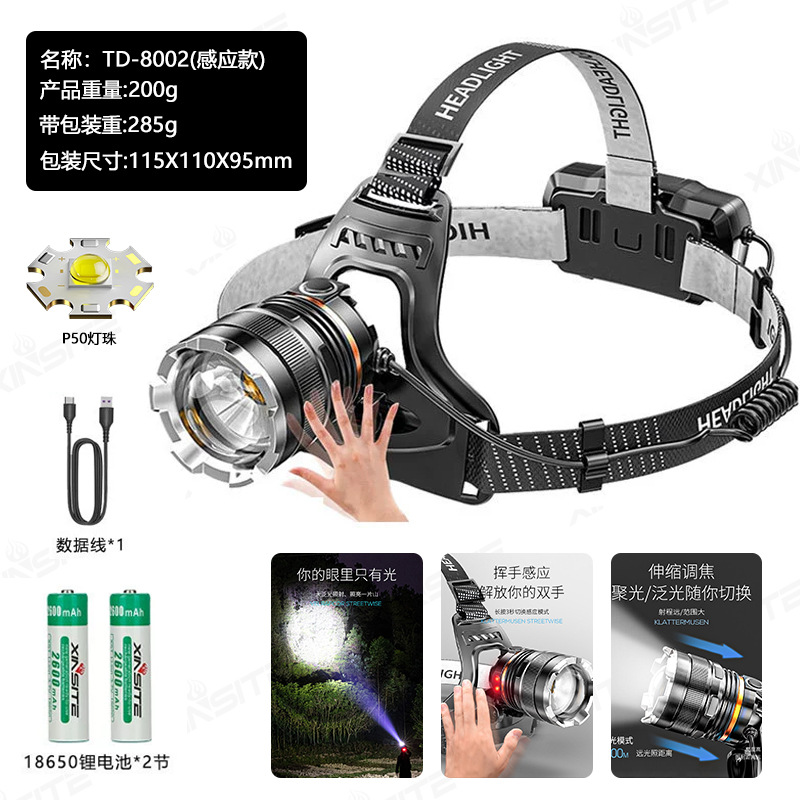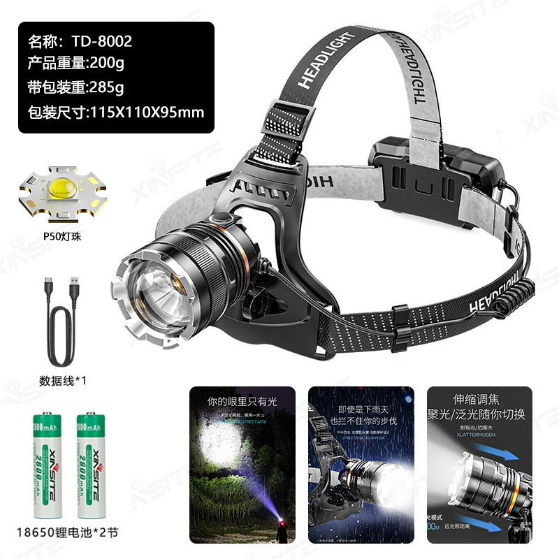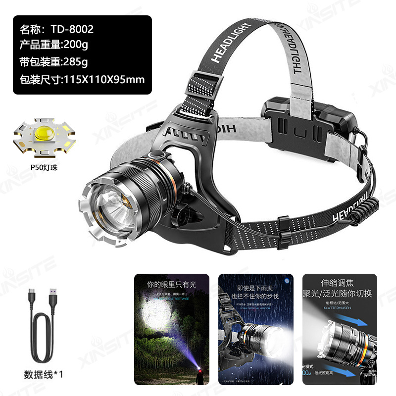 크로스 보더 P50 야외 야간 낚시 유도 헤드램프 강한 빛 고출력 헤드램프 텔레스코픽 포커스 라이트 헤드 마운트 헤드램프