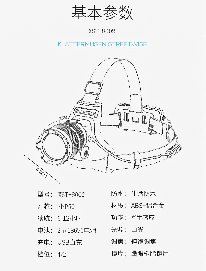 • 8002 헤드 램프 P50 유도 (배터리가없는 단일 헤드 램프)