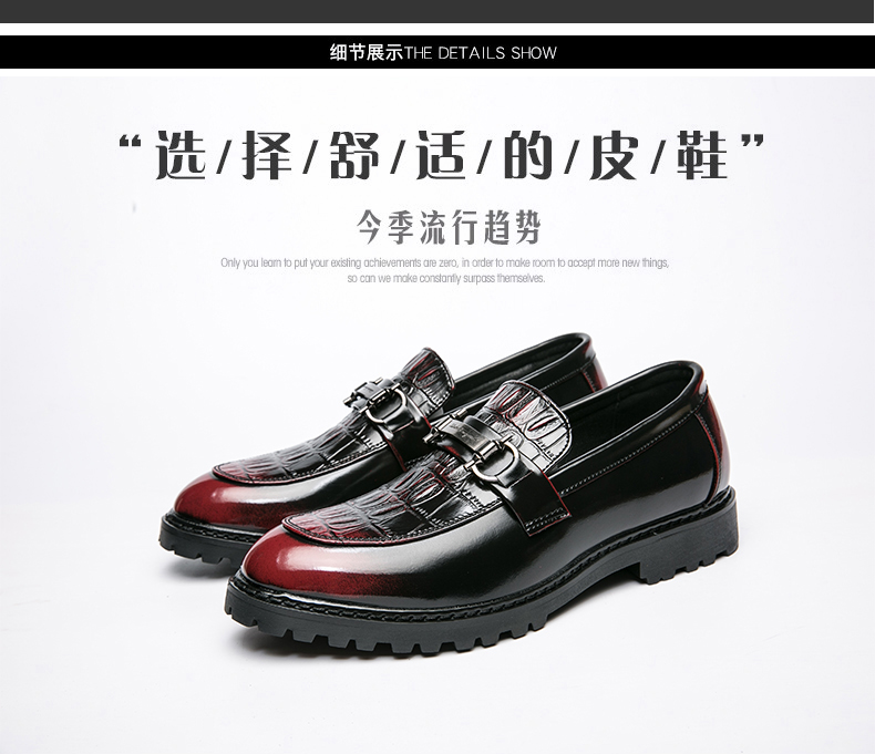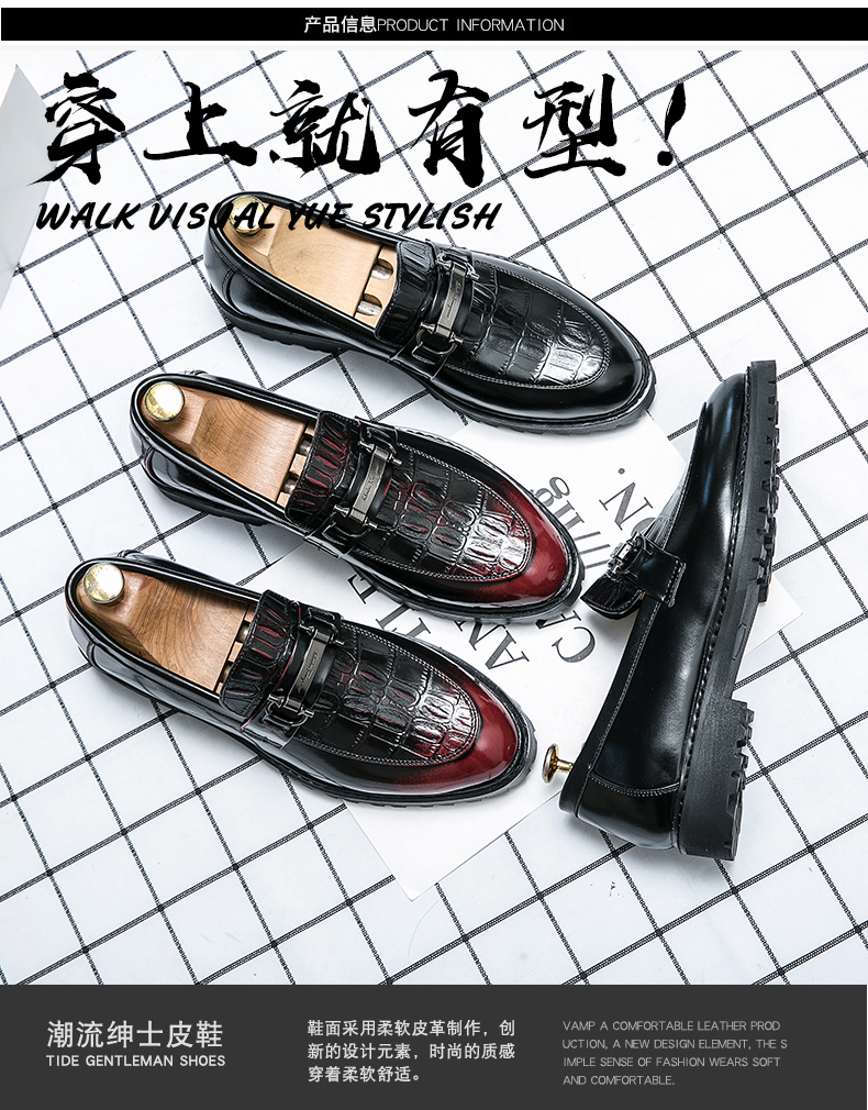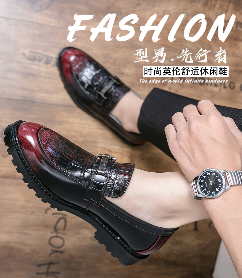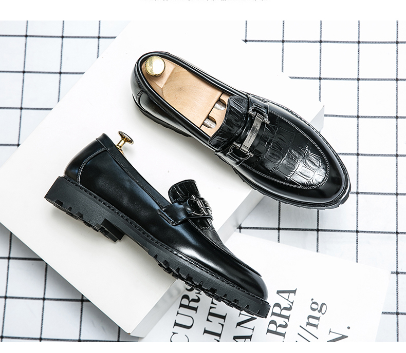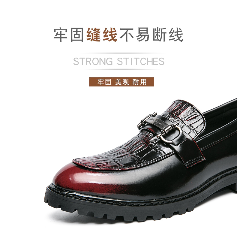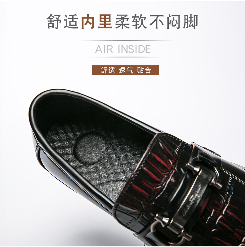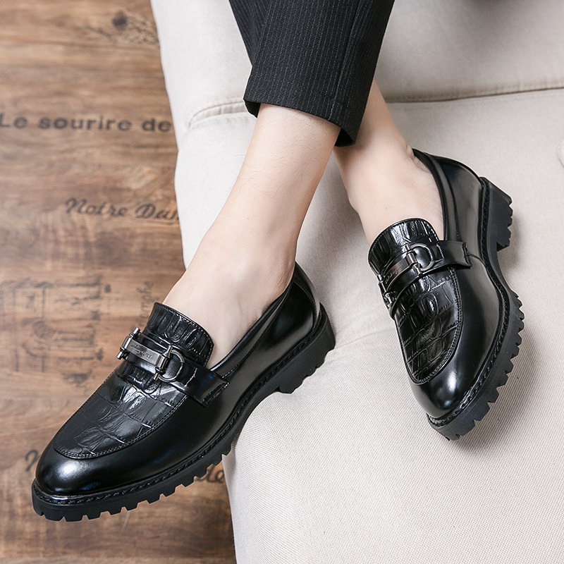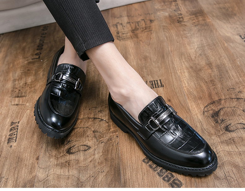 韩版尖头小皮鞋男马衔扣商务潮流休闲鳄鱼纹豆豆鞋懒人发型师男鞋
