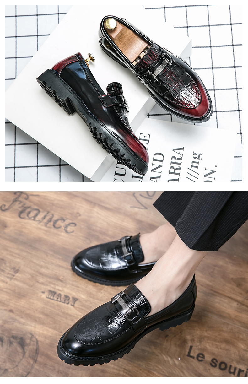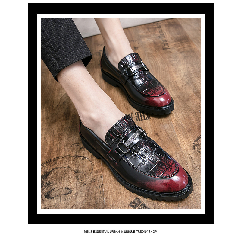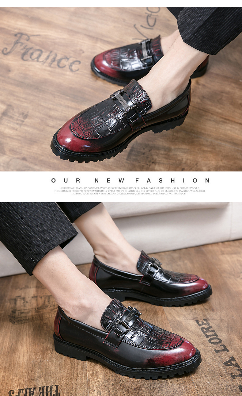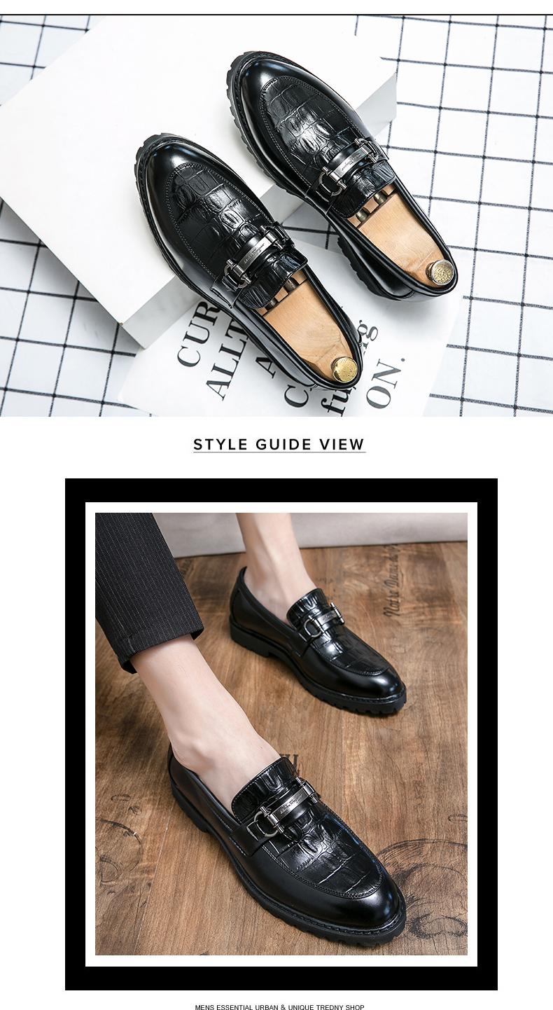 한국 스타일 뾰족한 발가락 가죽 신발 남성용 말 버클 비즈니스 트렌디 캐주얼 악어 스타일 콩 신발 게으른 헤어 스타일리스트 남성 신발스토어 가기