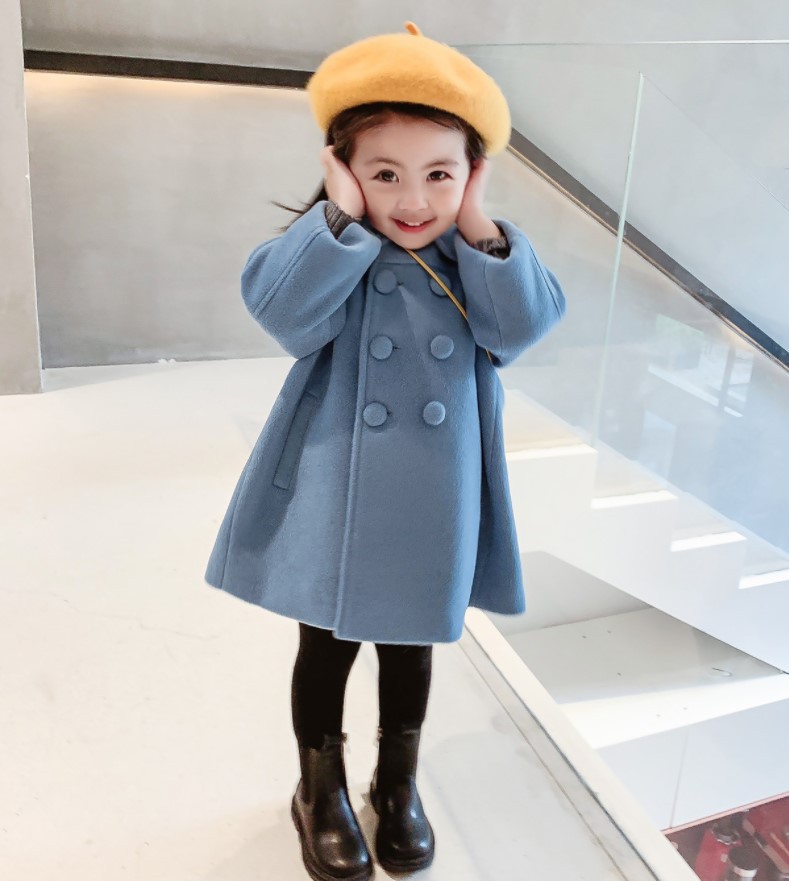 대외 무역 여자 코트 2021 겨울 신제품 어린이 퀼트 두꺼운 더블 브레스트 기질 봄 모직 코트 아동복스토어 가기