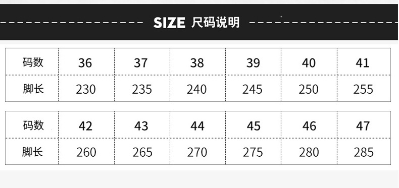 【关于大小】标准运动鞋码