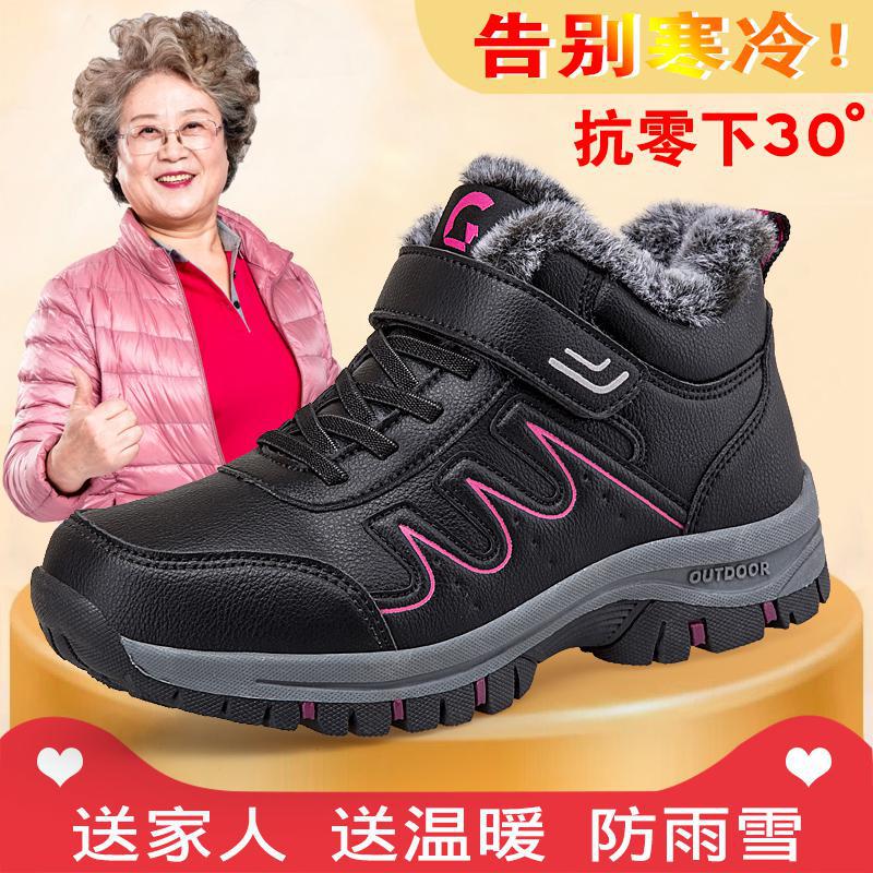 겨울 2021 새로운 노인 신발 남성용 두꺼운 하이탑 울 신발 중년 및 노인 운동화 여성용 기모 면 신발스토어 가기