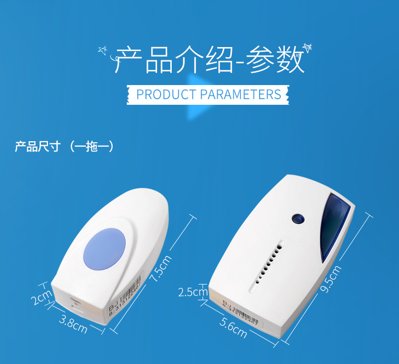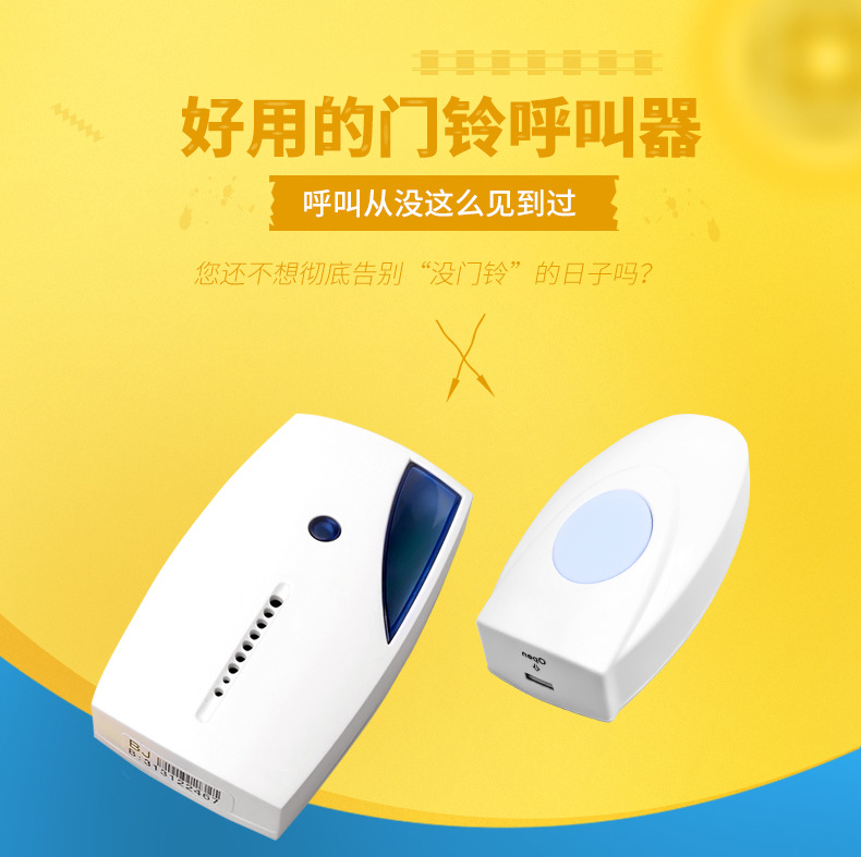 别名:无线门铃/电子音乐门铃/遥控门铃/门铃提醒器/老人呼叫器