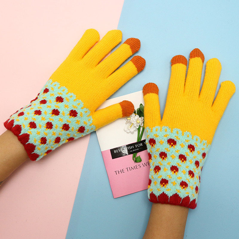 • 여성용 컬러 털실 풀 핑거 장갑 (노란색)