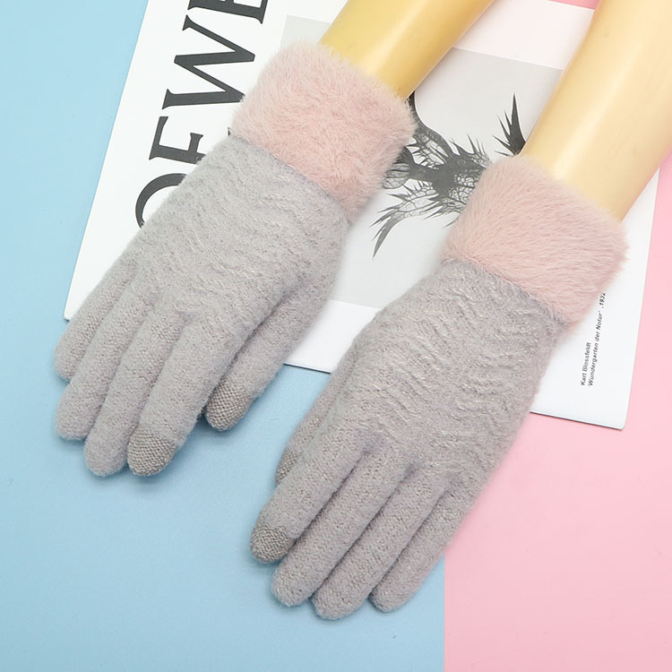 • 여성용 풀 핑거 밍크 퍼 러브 핑크