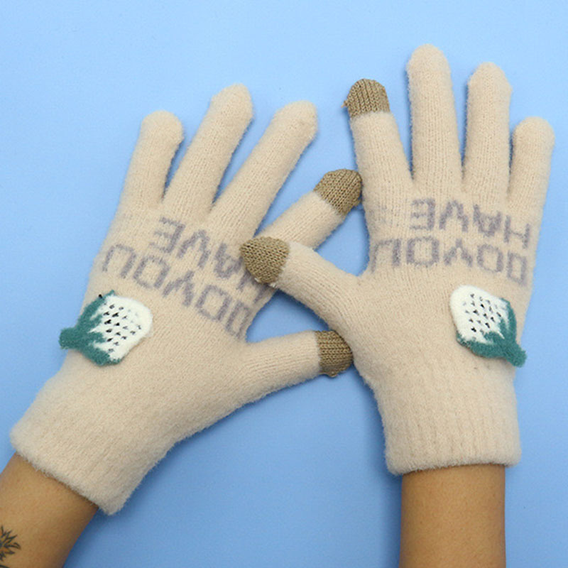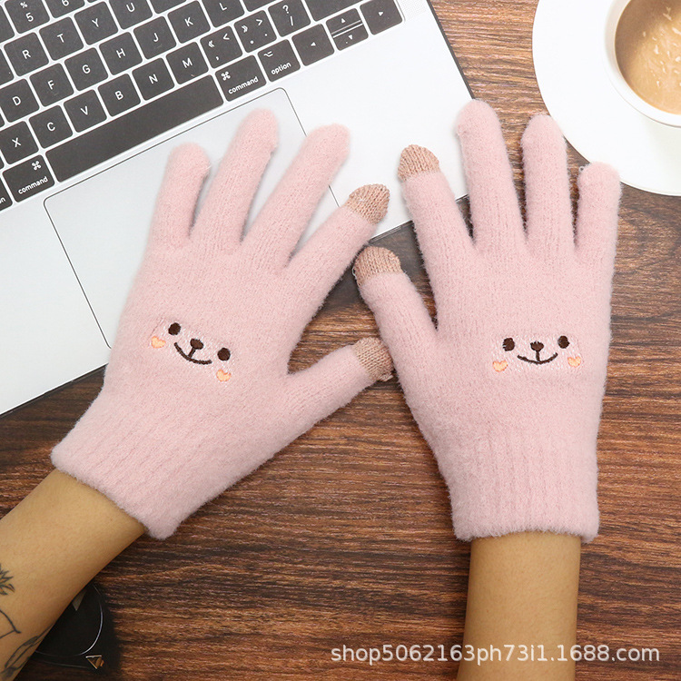 터치스크린 장갑 여성용 겨울 라이딩 방한 오토바이 학생용 플러스 벨벳 야외용 면 도매 자수 디자인