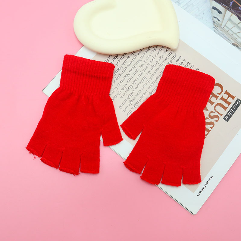 • 솔리드 컬러 하프 핑거 로즈 레드