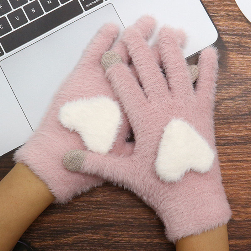 • 여성용 풀 핑거 밍크 퍼 하트 화이트