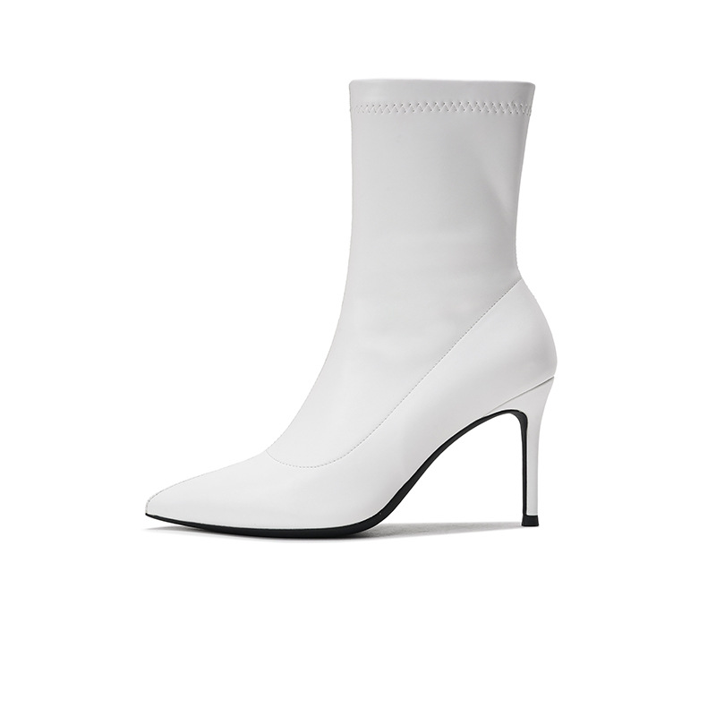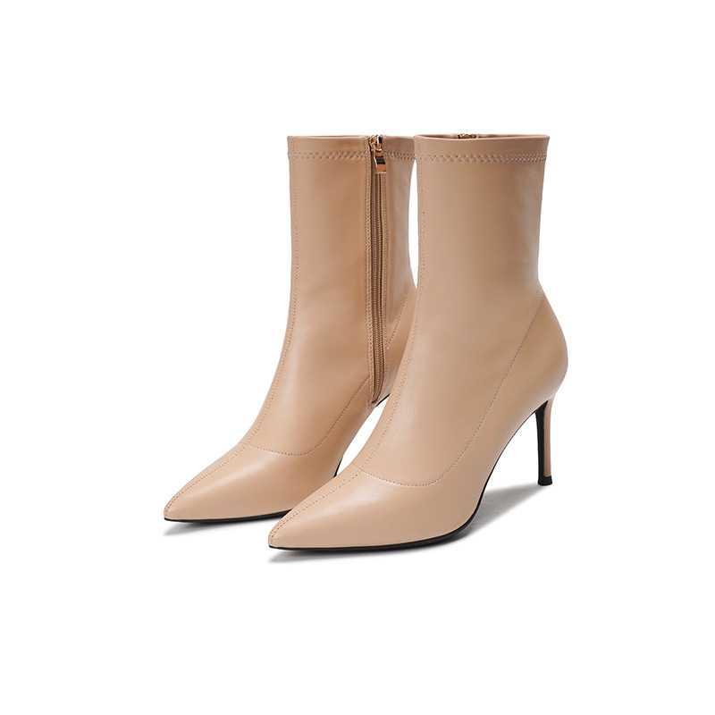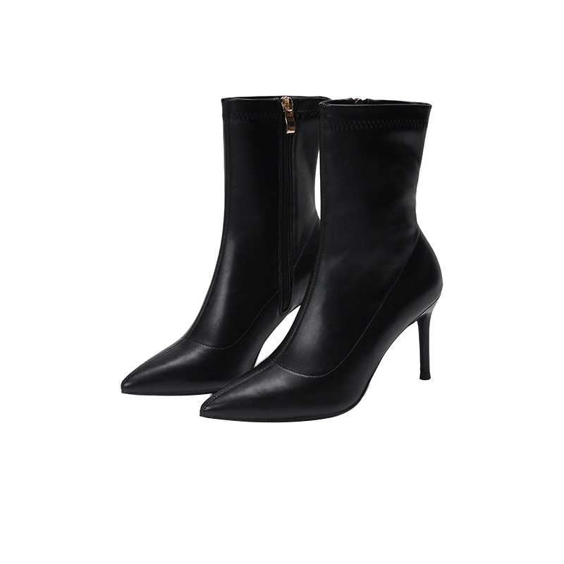공장 가공 사용자 정의 가을과 겨울 하이힐 부츠 얇은 굽 사이드 지퍼 가죽 뾰족한 한국식 짧은 부츠 얇은 굽 부츠스토어 가기