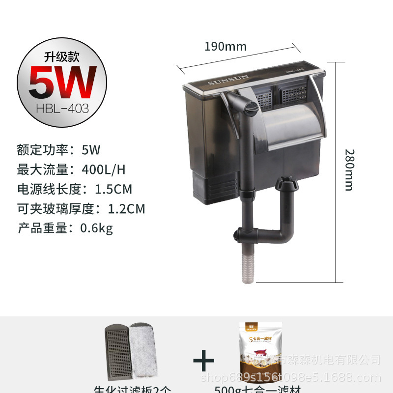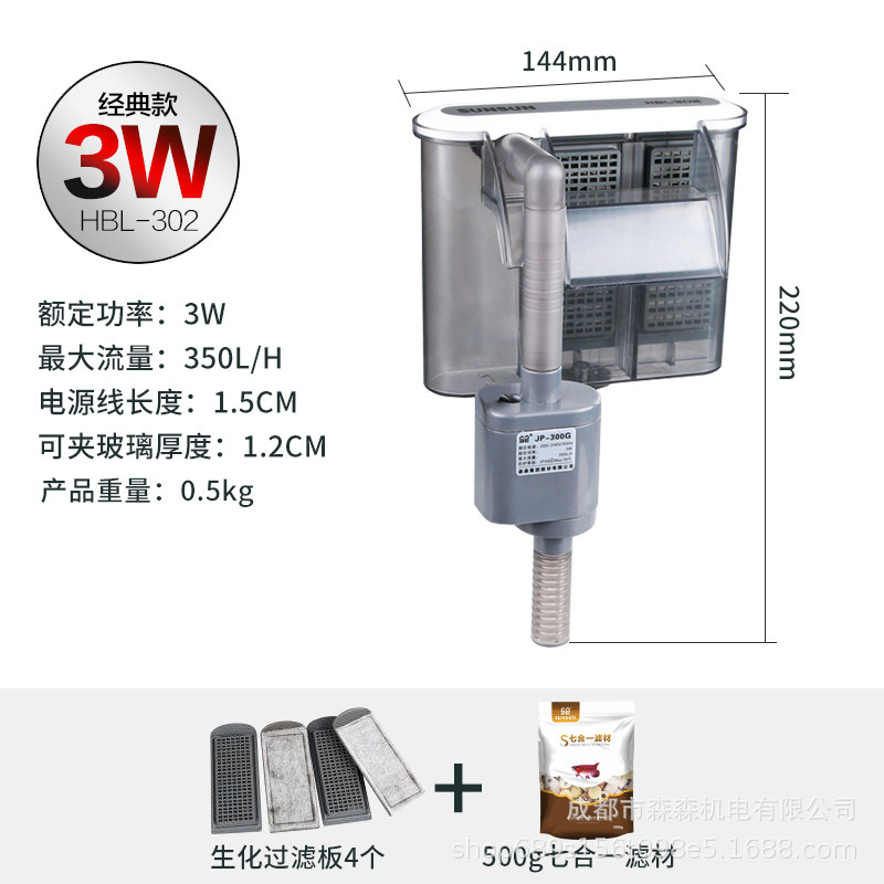 센센 HBL 필터 벽걸이형 폭포 필터 3-in-1 외부 어항 산소 펌프 소형 거북이 어항 고효율