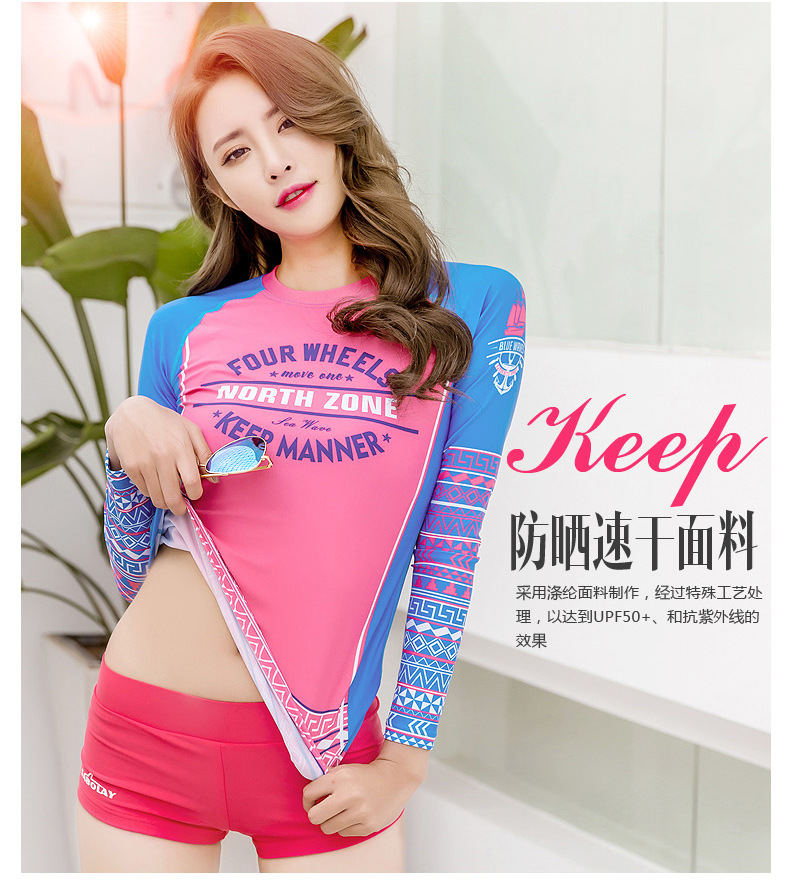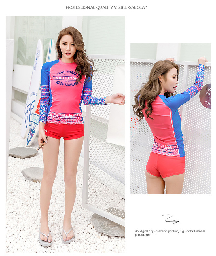 2021 한국 스포츠 수영복 여성용 스플릿 보수 세트 긴 소매 태양 보호 UPF50 + 속건 서핑 온천 수영복스토어 가기