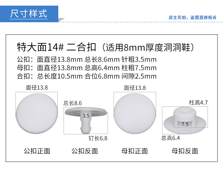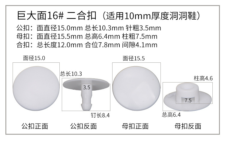 • POM 투인원 버클*16+14#대소면*흰색*1팩에 100세트[PP봉지]