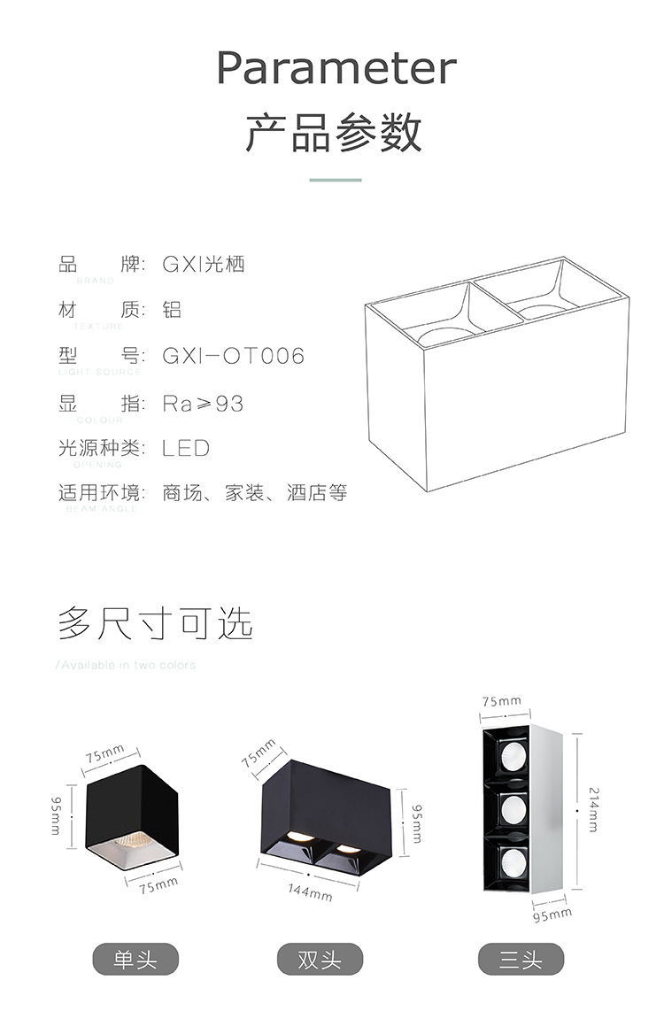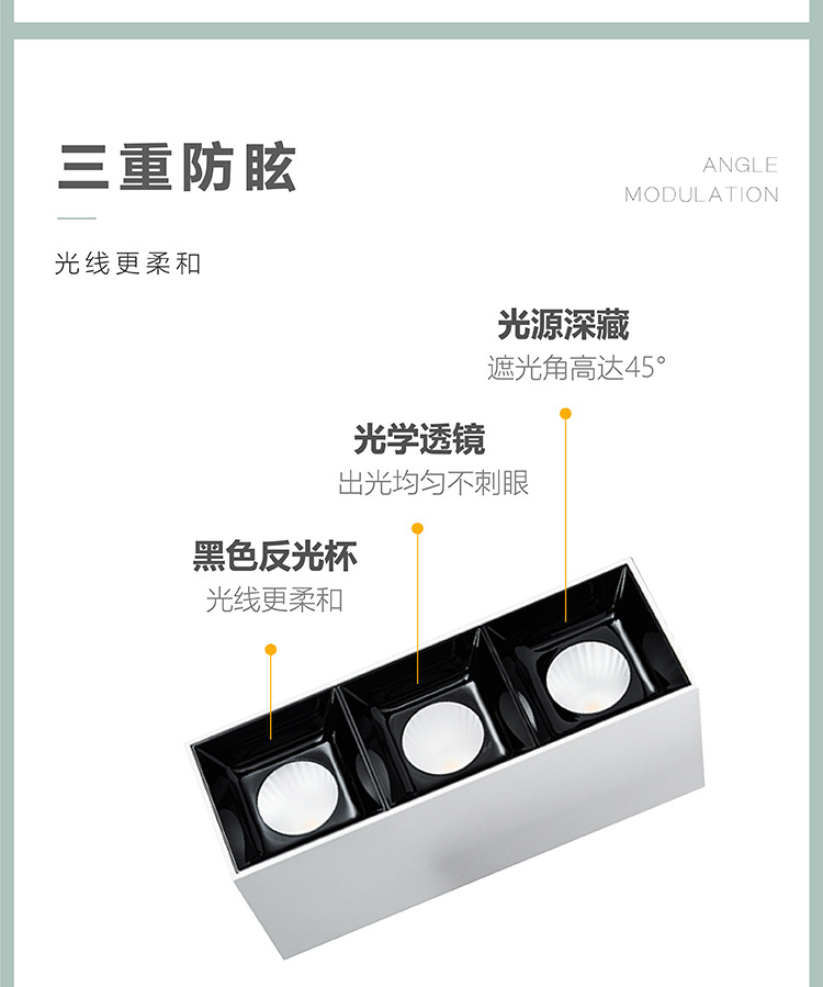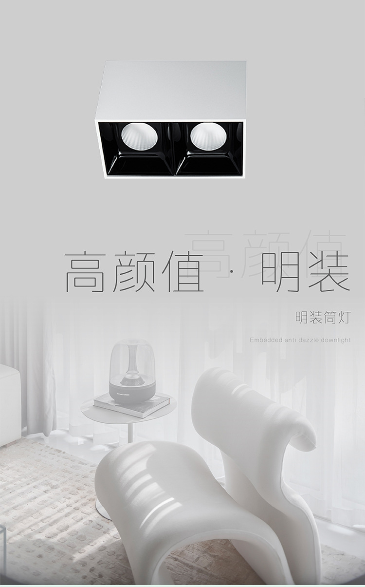 표면 장착형 사각형 가정용 눈부심 방지 천장 이중 조명등 표면 장착형 그릴 스포트라이트 무타공 스포트라이트 고연색성스토어 가기