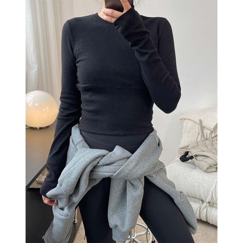 겨울 새로운 한국 스타일 요가 스포츠 스타일 쉐이핑 슬림핏 티셔츠베이스 슬리밍 스크럽 여성용 두꺼운 캐주얼 탑스토어 가기