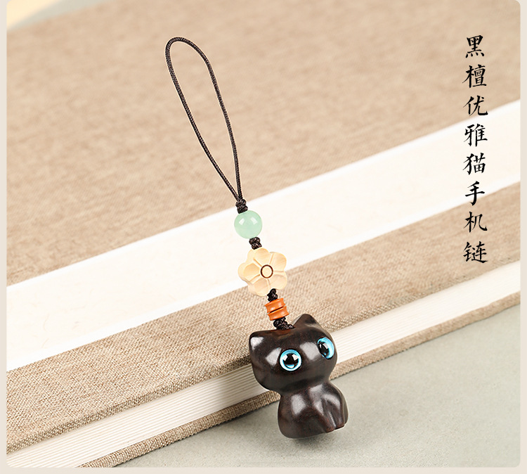 • 고양이 전화 체인 [흑단]