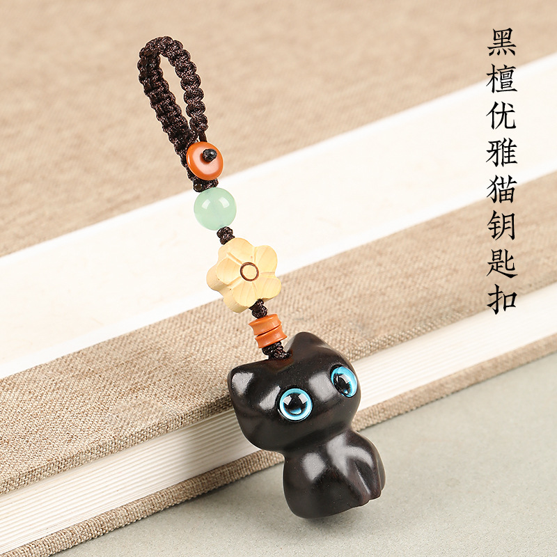 남성과 여성을위한 흑단 고양이 자동차 키 체인 펜던트 커플 귀여운 휴대 전화 체인 펜던트 로프 창조적 인 보석스토어 가기