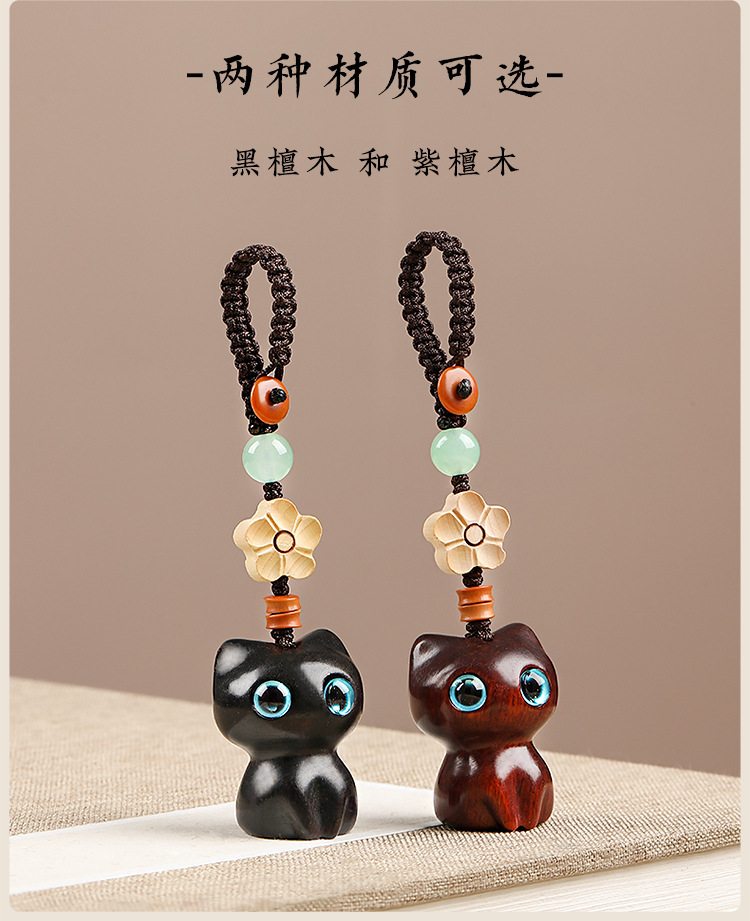 남성과 여성을위한 흑단 고양이 자동차 키 체인 펜던트 커플 귀여운 휴대 전화 체인 펜던트 로프 창조적 인 보석