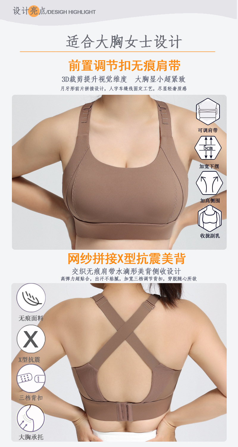 조절 가능한 대형 스포츠 브라, 통기성과 충격 방지 기능이 있는 원피스 요가복, 아름다운 등 라인을 위한 피트니스 브라, 옆가슴을 조이는 브라스토어 가기