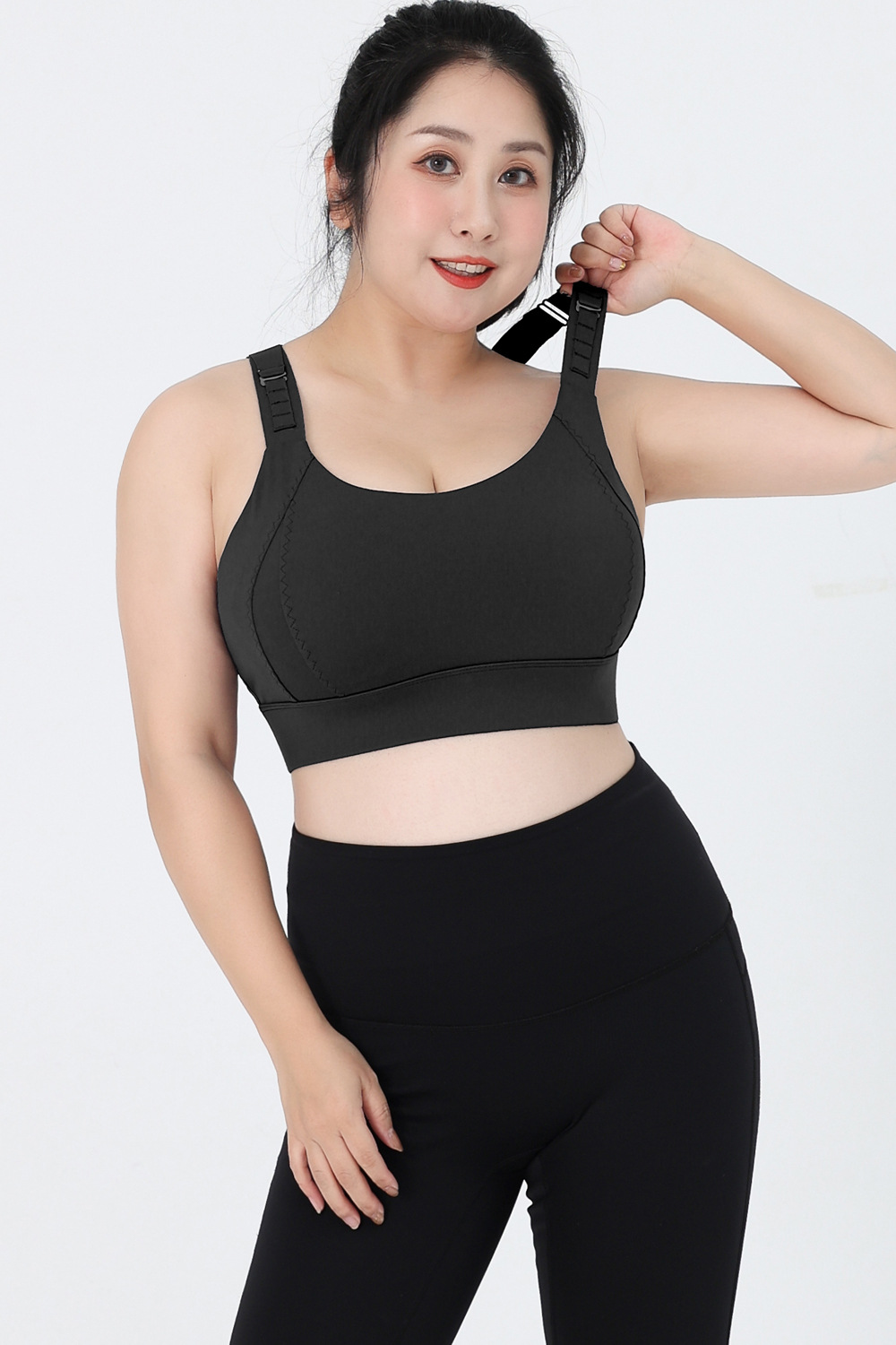 조절 가능한 대형 스포츠 브라, 통기성과 충격 방지 기능이 있는 원피스 요가복, 아름다운 등 라인을 위한 피트니스 브라, 옆가슴을 조이는 브라