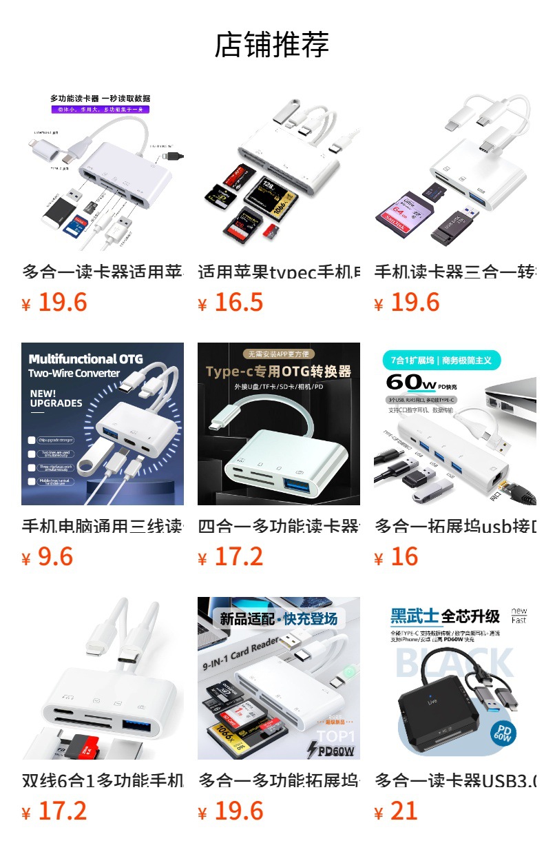 • USB+TC 듀얼 헤드 [TC 다기능 읽기 + 3USB + RJ45] 60W 고속 충전