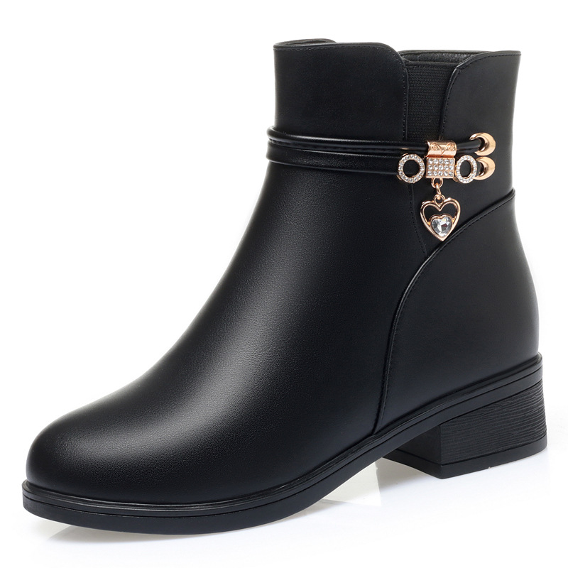 2023 겨울면 패딩 신발 여성 가을 및 겨울 중년의 부드러운 바닥 짧은 부츠 플랫 가죽 신발 패션 캐주얼 기모 부츠스토어 가기