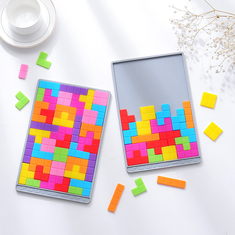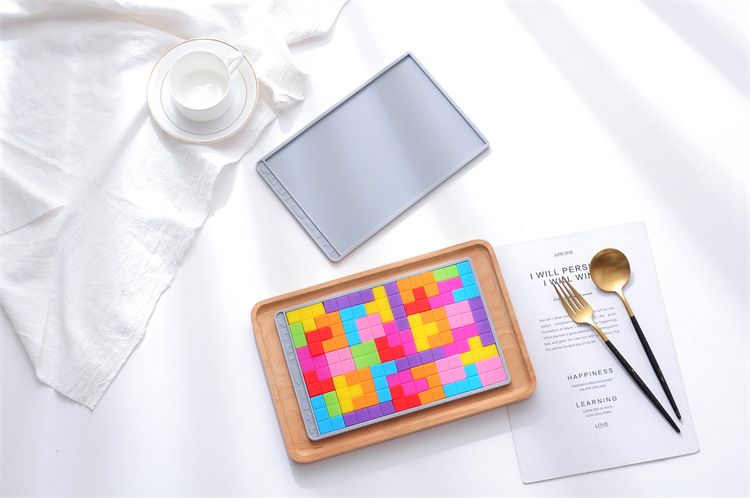 재고 아이들의 관심 퍼즐 장난감 테트리스 DIY 두뇌 장난감 실리콘 상자 패턴 패치 워크 금형
